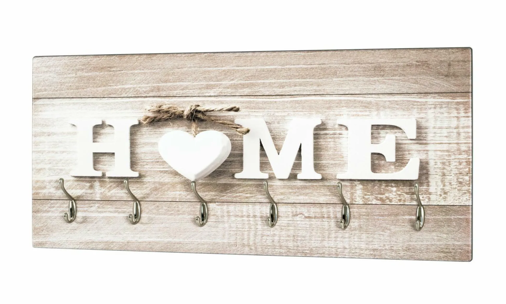 aus MDF mit UV-Direktdruck (Home), 6 Garderobenhaken aus Metall in Edelstahloptik