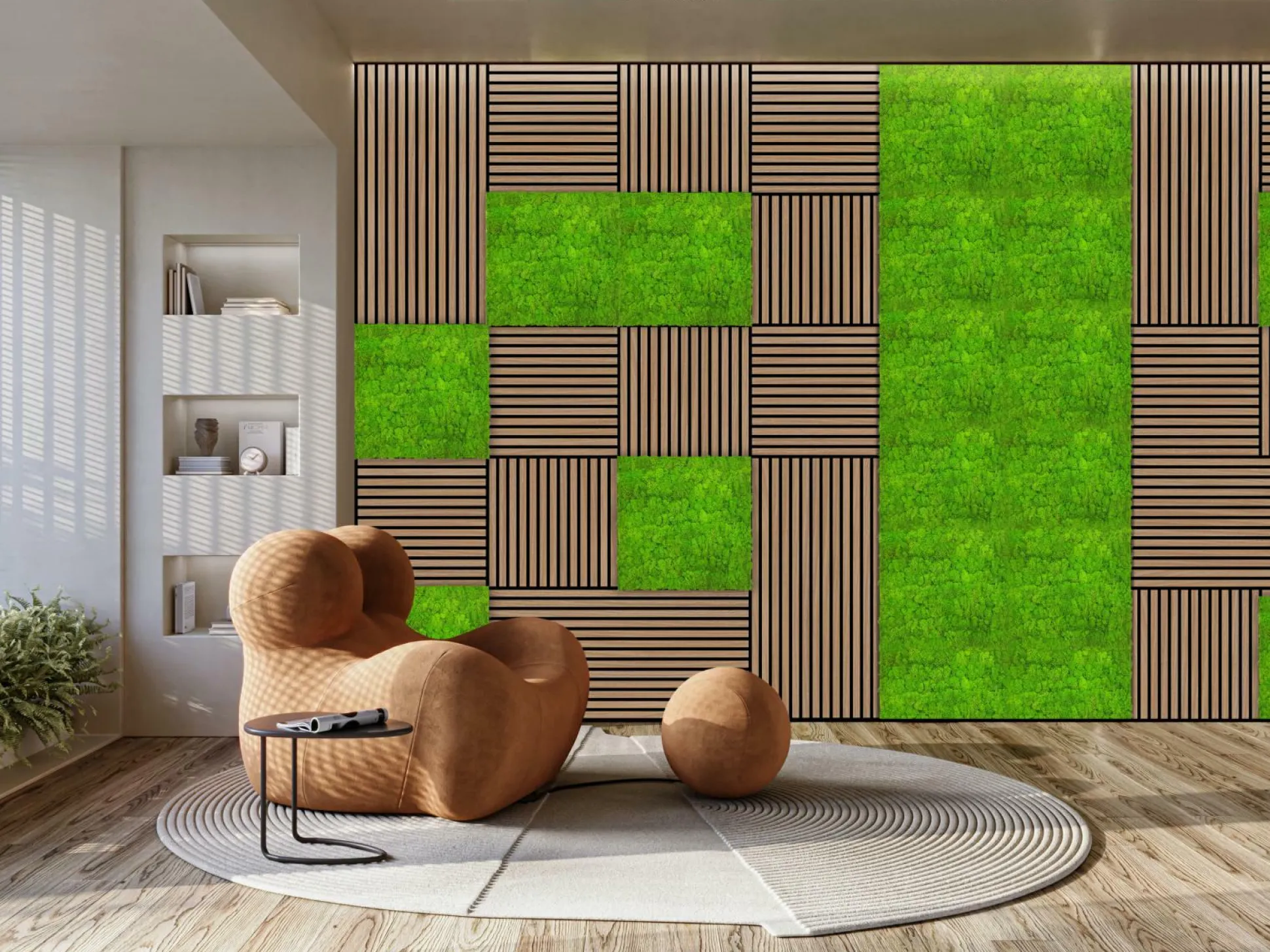 · Mit den Jangal Modular Wall Wandpaneelen verleihen Sie Ihren Räumen nicht nur optisch einen ansprechenden und natürlichen Look, sondern Sie verbessern gleichzeitig die Raumakustik durch ein obendrein nachhaltiges Produkt. Neben der Steigerung des Wohlbefindens kann das Produkt auch durch seine nachhaltigen Materialien überzeugen. Die Filzplatte besteht zum Großteil aus recyceltem PET. Ein weiterer großer Vorteil der Modular Wall ist ihre einfache Handhabung. Dank ihres geringen Gewichts können Sie die Paneele problemlos montieren und anpassen. Dadurch wird die Installation zu einem Kinderspiel, egal ob Sie eine kleine Fläche oder ein großes Projekt gestalten möchten. Darüber hinaus bietet die Modular Wall eine ausgezeichnete Flexibilität. Sie können die 2 verschiedenen Paneelgrößen frei kombinieren und somit ein individuelles Muster schaffen, das perfekt zu Ihrem Geschmack und Stil passt. Ein weiteres Highlight ist der ?Connector?-Streifen, er ermöglicht die versatzfreie, waagerechte als auch senkrechte Anordnung der Paneele und bietet somit unendliche Kombinationsmöglichkeiten für Ihre moderne Wandgestaltung. Die Paneele können überall im Innenbereich eingesetzt und zur Installation entweder verschraubt oder mit einem lösemittelfreien Montageleim verklebt werden. Ob Sie einen modernen, minimalistischen Look oder einen kreativen, verspielten Raum schaffen möchten – die Modular Wall macht es möglich. Alle Jangal Produkte sind individuell miteinander kombinierbar.