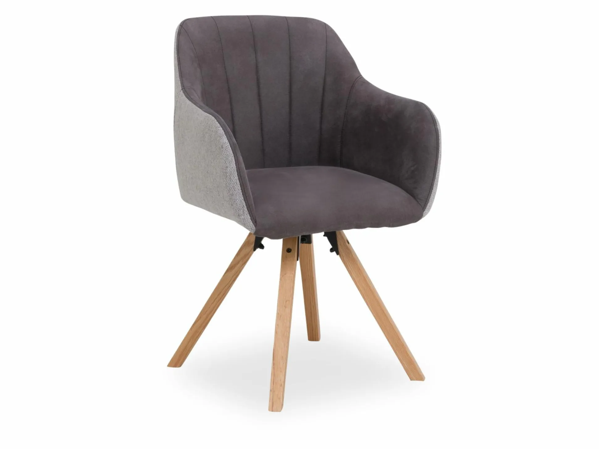 Der stilvolle Armlehnenstuhl ASTOR ist die ideale Sitzgelegenheit für Ihr Esszimmer! Der Stuhl besteht aus einer einzigartigen Kombination von Mikrofaserbezug in Vintage-Optik in Anthrazit für Innen und Webstoff (1026-5) für Außen. Das Bezugsmaterial aus Polyester verspricht eine pflegeleichte Handhabung. Abgerundet wird der moderne Look durch ein naturfarbiges Eichengestell. Dank der funktionalen Drehfunktion ist er vielseitig einsetzbar und passt sich Ihren Bedürfnissen perfekt an. Die angenehme Sitzhöhe beträgt ca. 49 cm und die komfortable Sitztiefe ist ca. 44,5 cm. Der Stuhl beeindruckt mit einer maximalen Belastbarkeit von 120 kg. Durch die Kombination von Natürlichkeit und Eleganz harmoniert der Armlehnenstuhl perfekt mit verschiedensten Einrichtungsstilen.