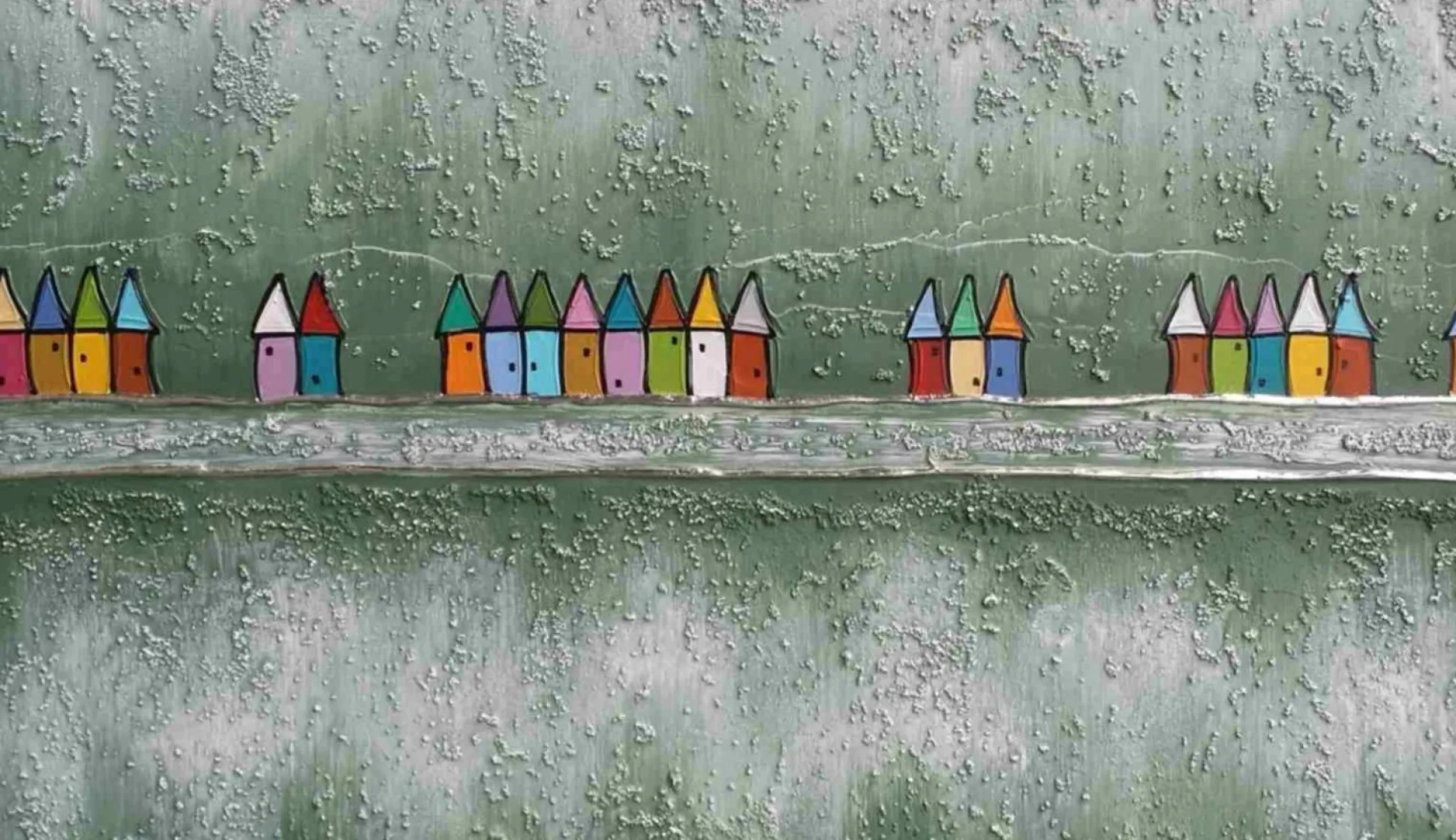 Mit dem Bild abstrakte Häuser setzen Sie einen dezent farbigen Akzent an der Wand. Das Original von Lea Bach ist in einer Schattenfugenleiste gerahmt und insgesamt in Grau gehalten. Auf der Horizontalen sind vereinzelt kleine bunte Häuser nebeneinander zu sehen. Durch das Farbenspiel und die künstlerische Darstellung der Häuser entsteht eine ganz besondere Stimmung im Raum.
