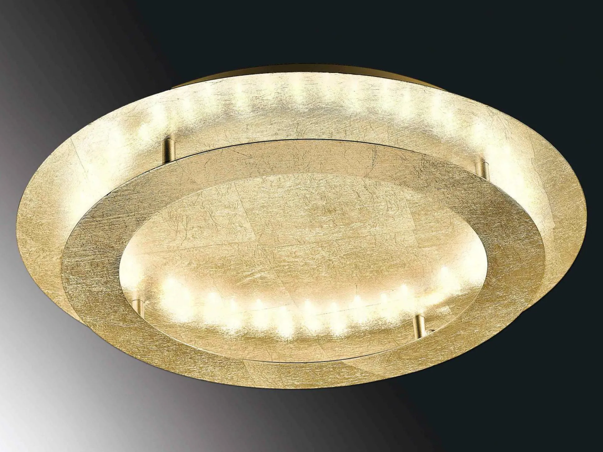 Hochmodern mit glamourösen Charakter – so präsentiert die Marke Paul Neuhaus die diese Deckenleuchte. Die edle Leuchte ist aus robustem Metall gefertigt, welches durch die goldene Gestaltung die exklusive und hochwertige Optik der Deckenleuchte unterstützt.
