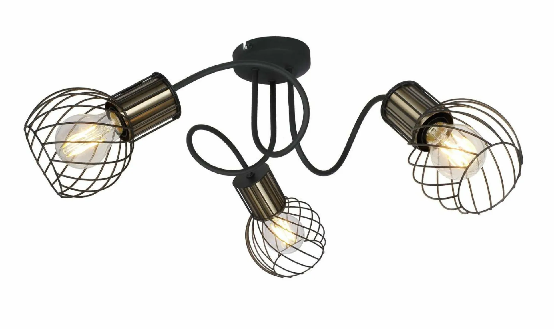 Sorgen Sie für eine stimmungsvolle Beleuchtung mit dieser Deckenleuchte von Globo Handels. Die Deckenleuchte aus schwarzem Metall überzeugt mit ihrem außergewöhnlichen Design, das dem angesagten Industrie-Look entspricht. In drei E27 Fassungen lassen sich beliebige Leuchtmittel (max. 40 Watt) einsetzen. Passende Leuchtmittel finden Sie bei uns im Shop.