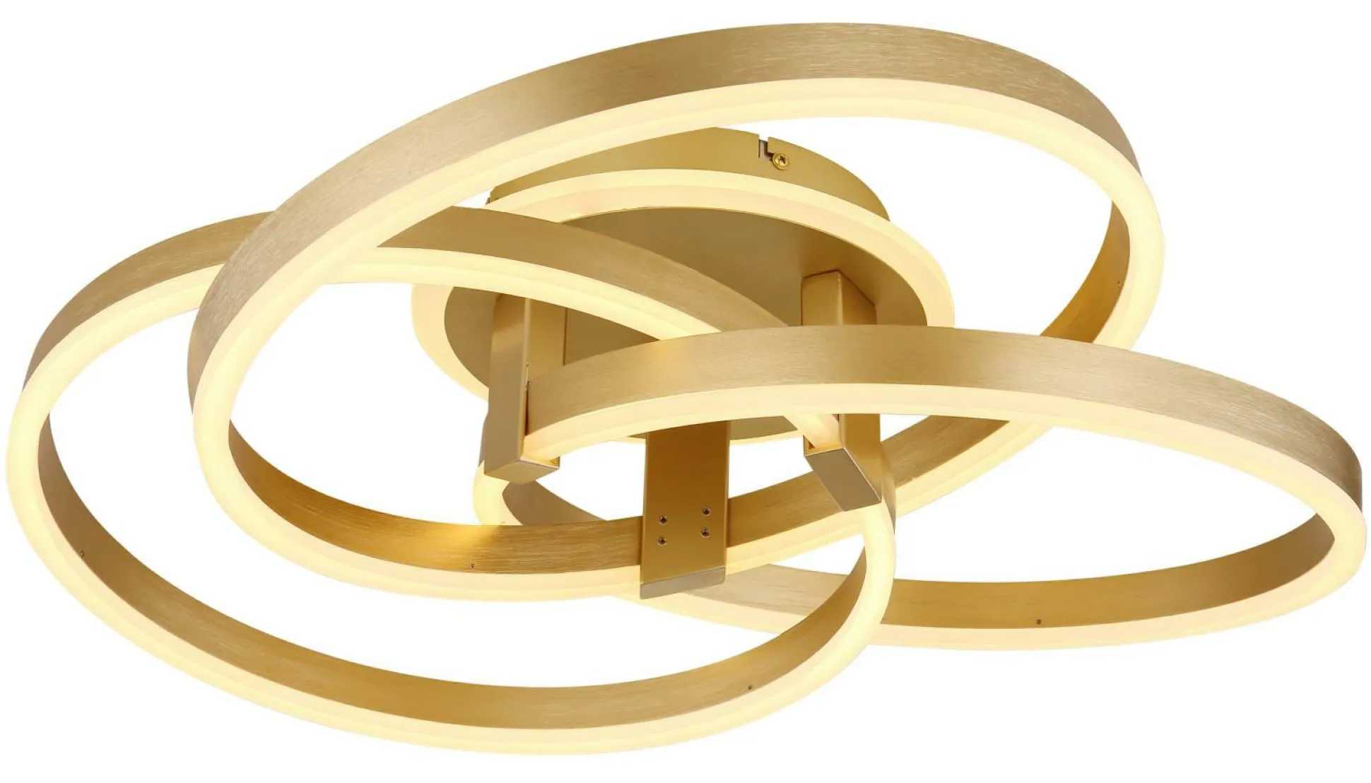 · Die Deckenleuchte von Globo Lighting ist eine elegante und schlichte Wahl für Ihr Zuhause. Die Leuchte besteht aus gebürstetem Aluminium, Metall in goldfarben matt und Acryl opal, das satiniert ist. Die Leuchte ist dimmbar und bietet mehrere Stufen über Wandschalter. Sie können die Farben der Leuchte fixieren und die Leuchte verfügt über eine Memoryfunktion. Die Leuchte verfügt auch über ein Nachtlicht und wird mit einer Fernbedienung geliefert. Batterien sind im Lieferumfang enthalten. Mit einer Größe von LxBxH: 600x575x200mm und einer Leistung von 56W ist diese Deckenleuchte ein echter Blickfang in jedem Raum