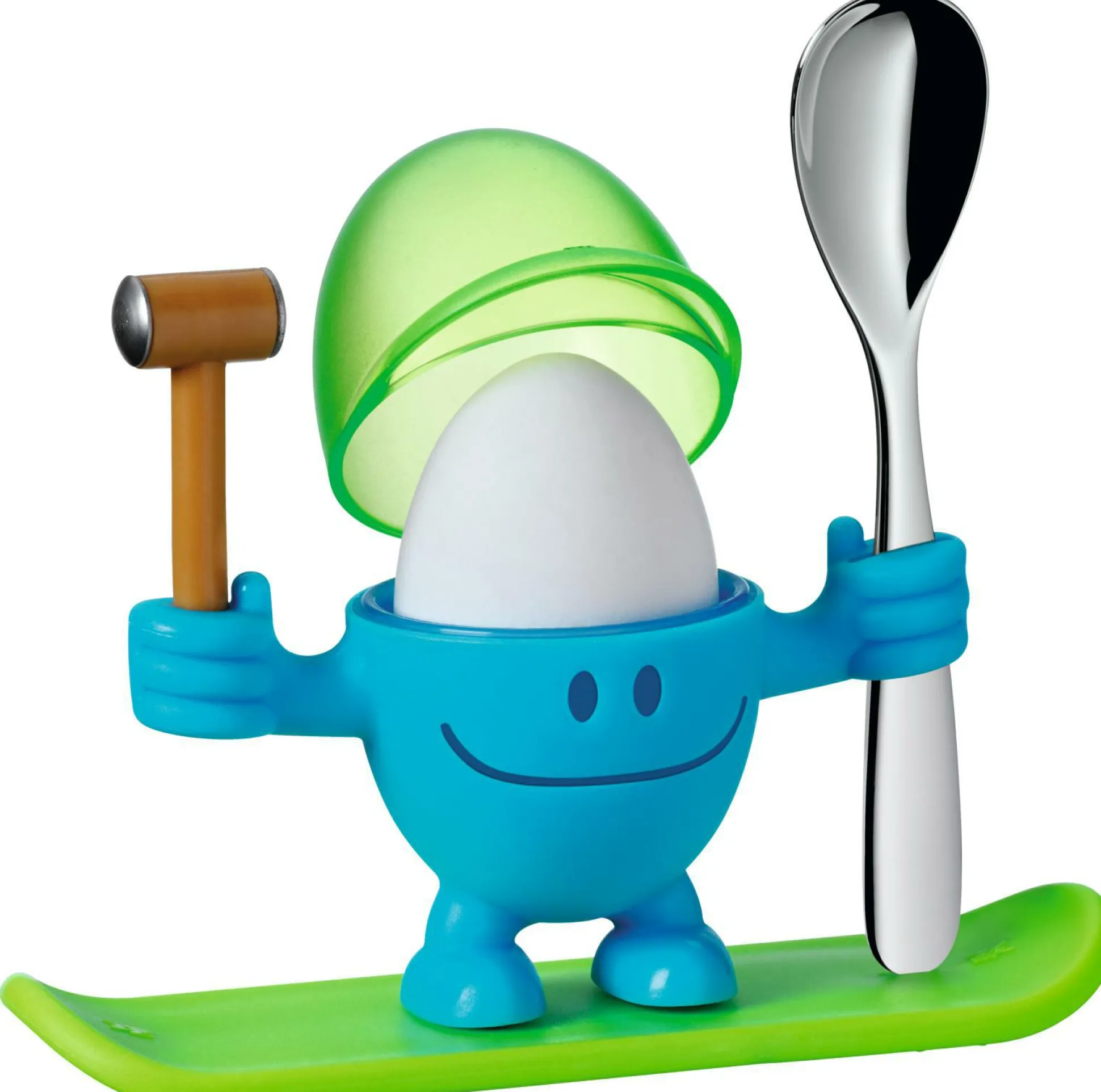 Der praktische Eierbecher Mc Egg blau von WMF ist ein perfekter Begleiter für den Start in Tag und macht direkt gute Laune. Aus hochwertigen Kunststoff gefertigt, überzeugt der süße Eierbecher mit seiner Qualität. Durch den zugehörigen Löffel aus Cromargan und der Kappe zum Sammeln der Eischalen hat der Eierbecher alles was Sie zum Genießen Ihres Frühstückseis brauchen und wird dabei zum Hingucker auf dem gedeckten Tisch.