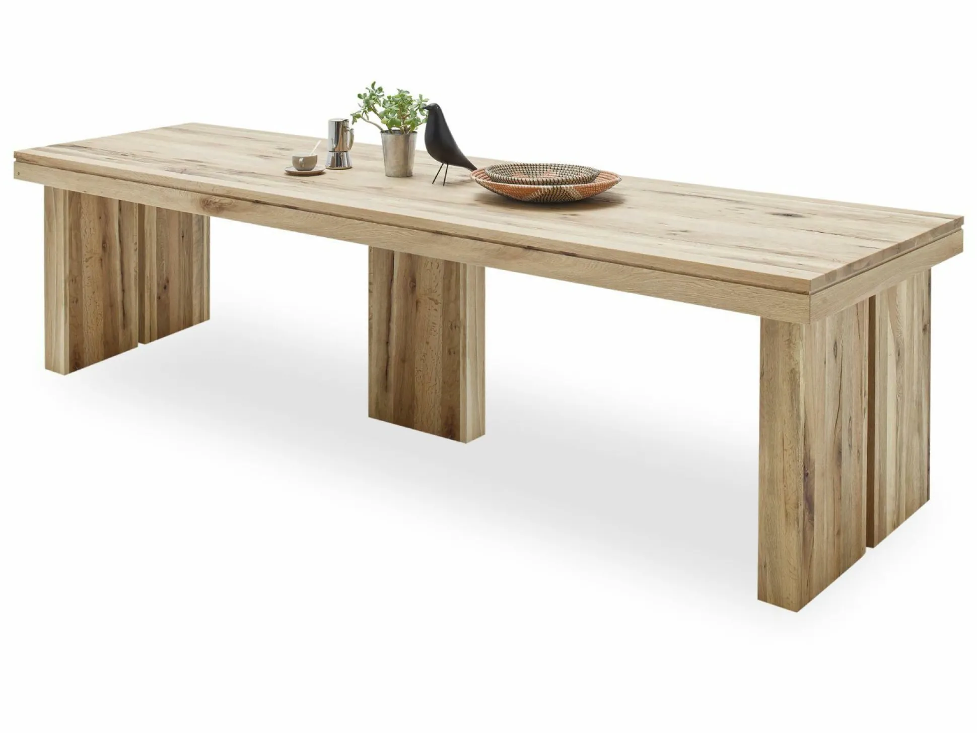 Eine besondere Form und tolles Material – der Esstisch Dublin überzeugt auf ganzer Linie! Insgesamt besteht der Tisch aus Wildeiche und präsentiert dadurch einen natürlichen, aber auch modernen Stil. Durch seine Form und den Tischbeine wird er in Ihrem Esszimmer zum Hingucker. Nehmen Sie mit Ihren Liebsten Platz und genießen Sie leckere Mahlzeiten!