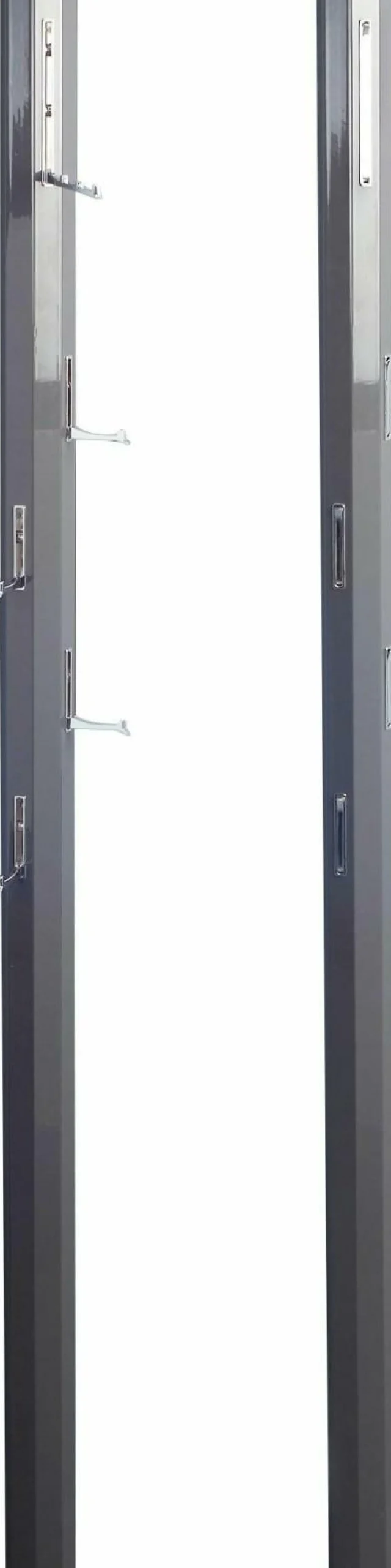 Die Garderobe in Form eines Balkens präsentiert sich in hochglänzendem Anthrazit Dekor. Passend dazu ist die Ergänzung durch von fünf verchromten Metallhaken. Besonders praktisch – die Haken lassen sich je nach Bedarf aus- und einklappen.