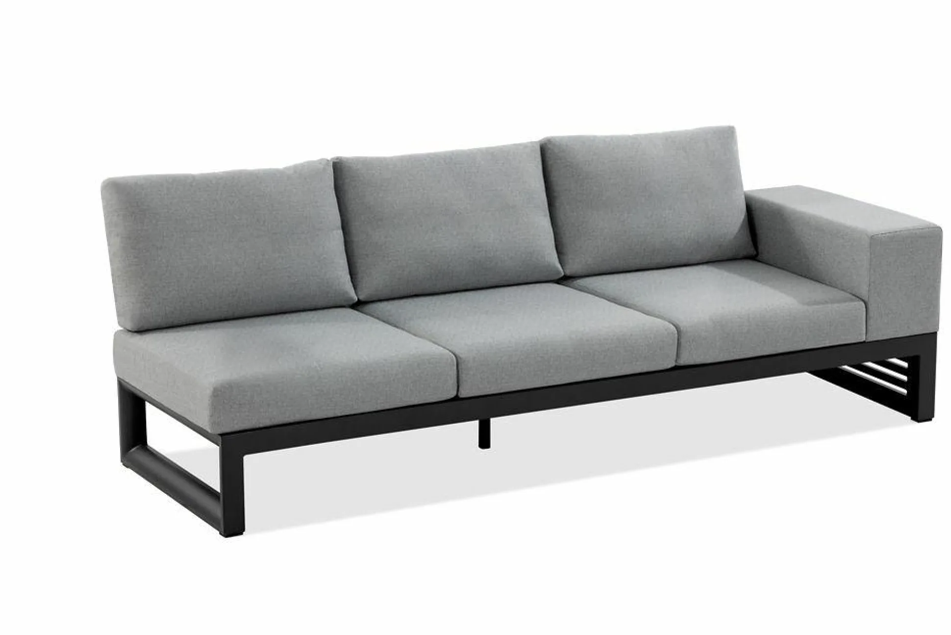 · Loungegruppe MALTA 3-Sitzer Sofa, durch flexible Positionierung der Rückenlehne ist das Sofa links- und rechtsseitig nutzbar, Sitz- und Rückenkissen Bezug River 766, Gestell Aluminium pulverbeschichtet, Farbton anthrazit, B 230 T 80 H 80 / Sh 40 cm