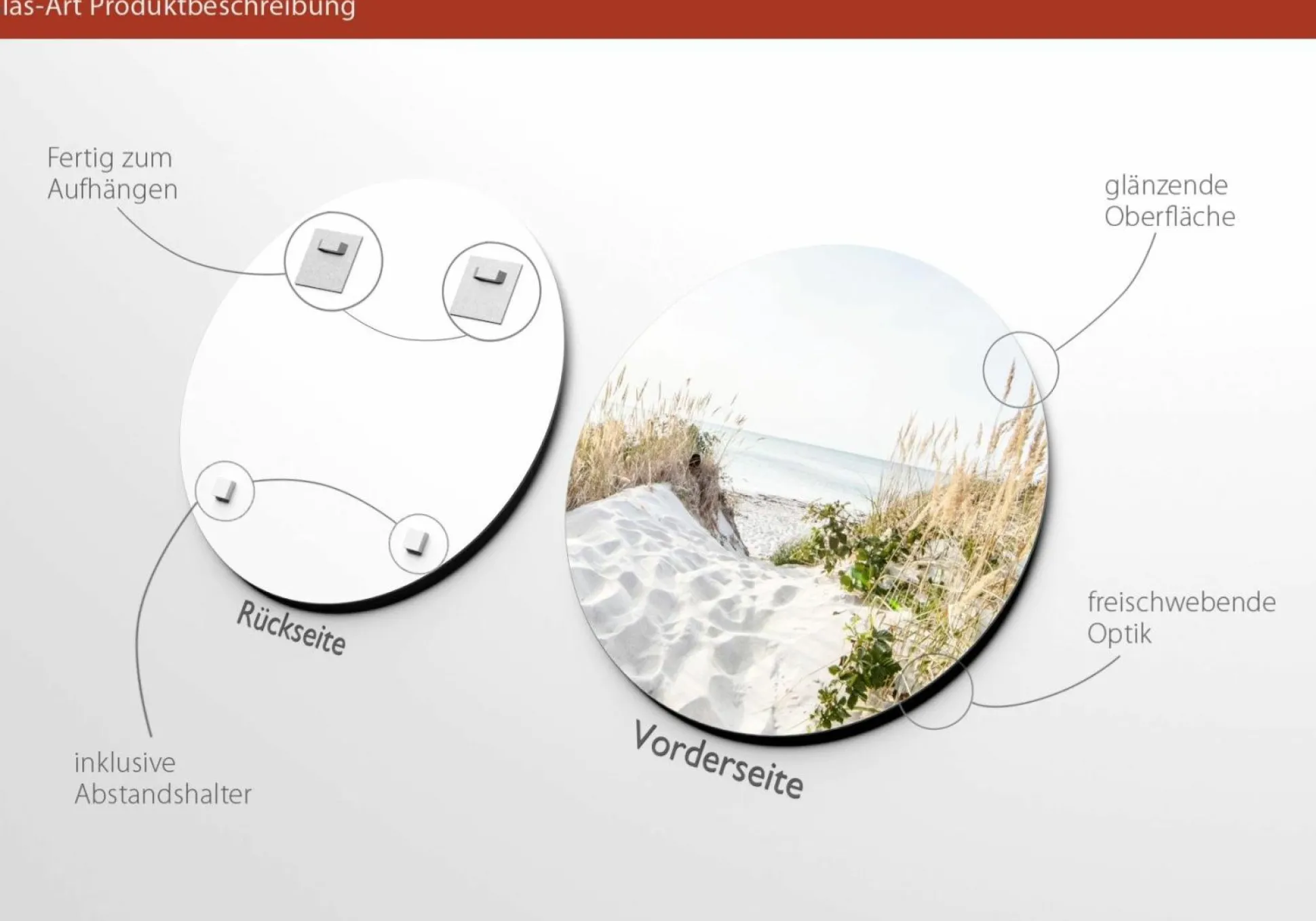 Verwandeln Sie Ihren Wohnbereich mit dem Glasbild SUNRISE der Marke PRO ART in einen ganz privaten Ort der Ruhe und Erholung. Das wunderschöne Strandmotiv erscheint auf einer stabilen, runden Glasplatte und wird mit einem hochwertigen Druckverfahren in Deutschland gefertigt.