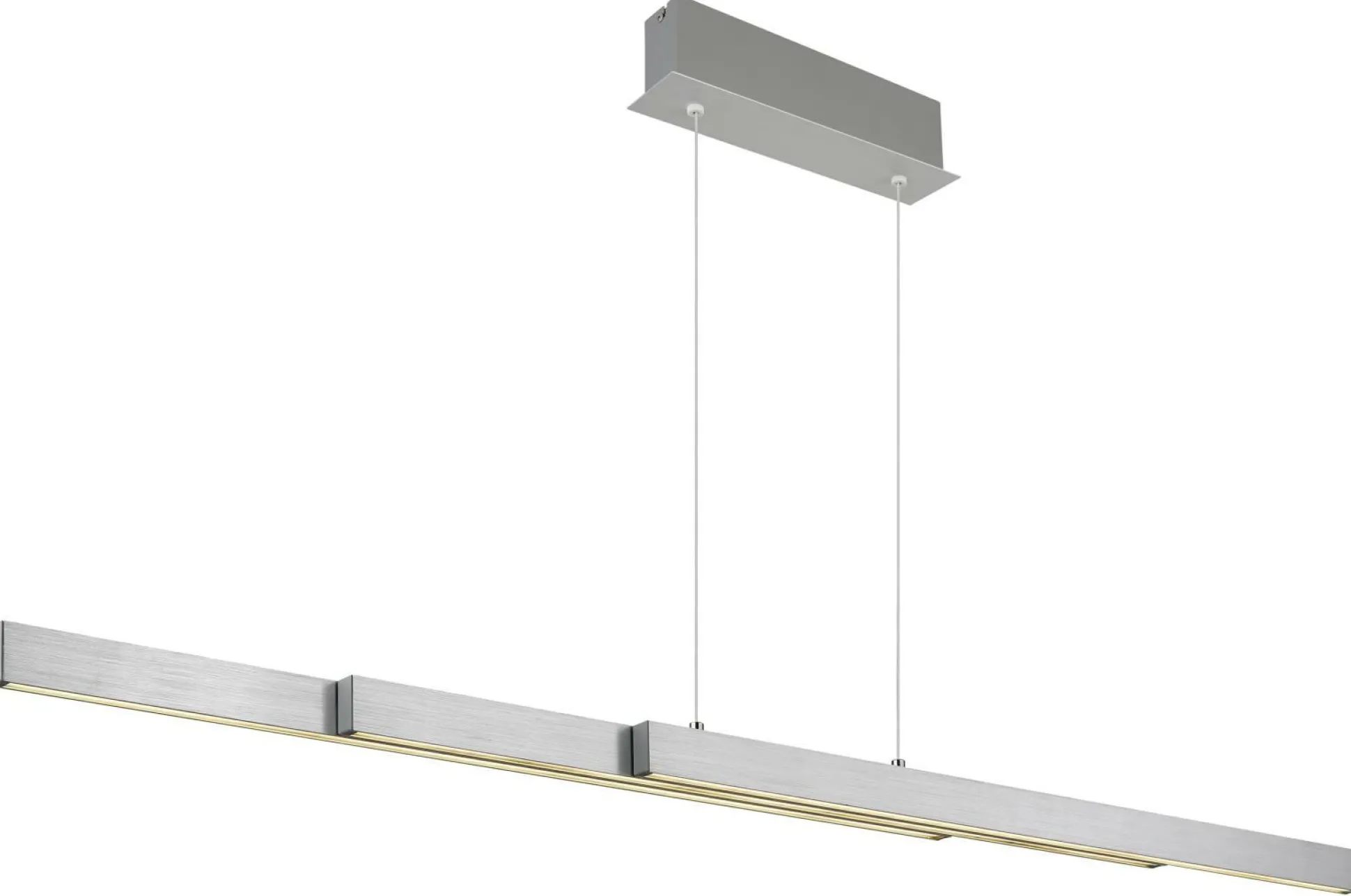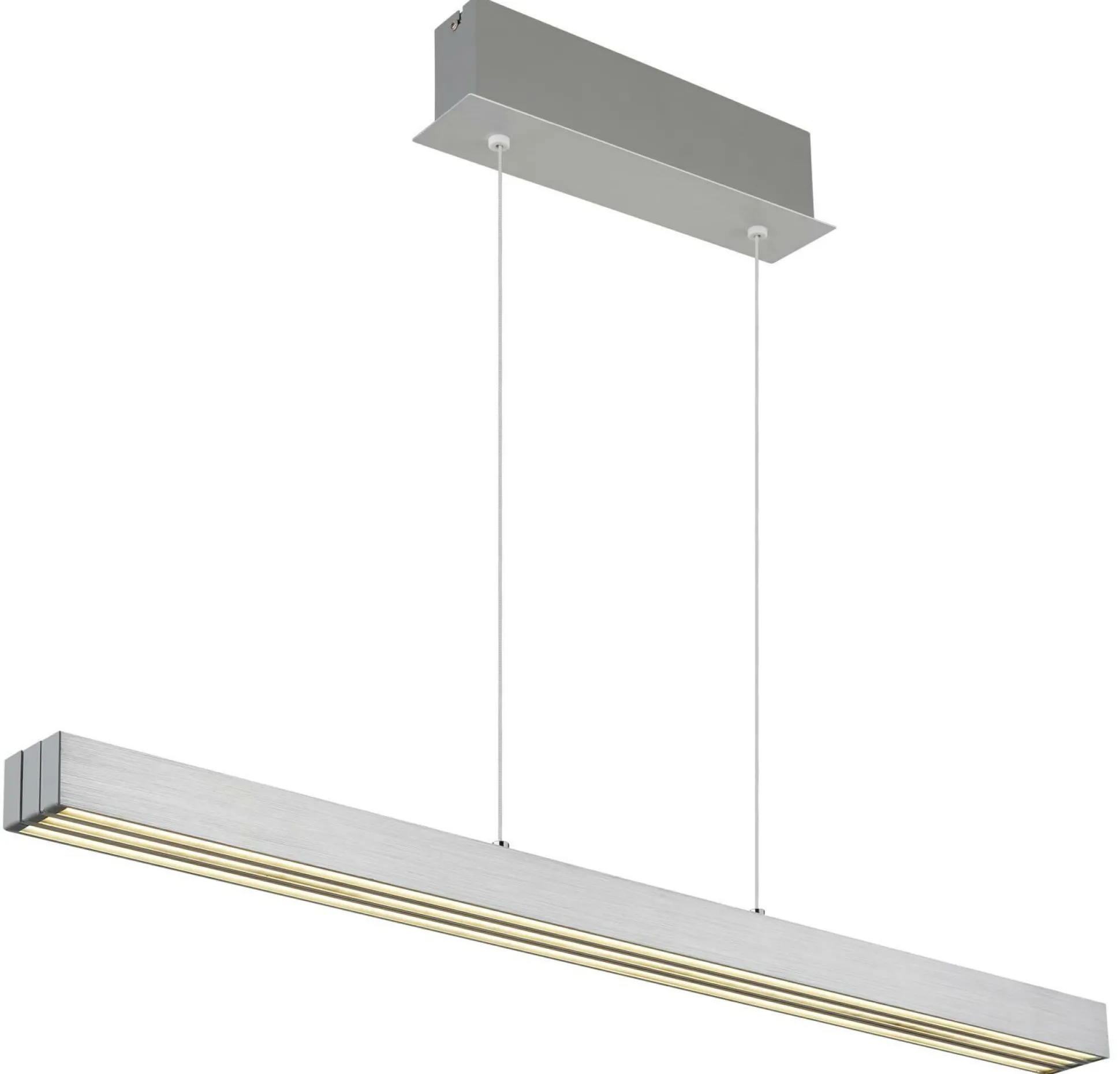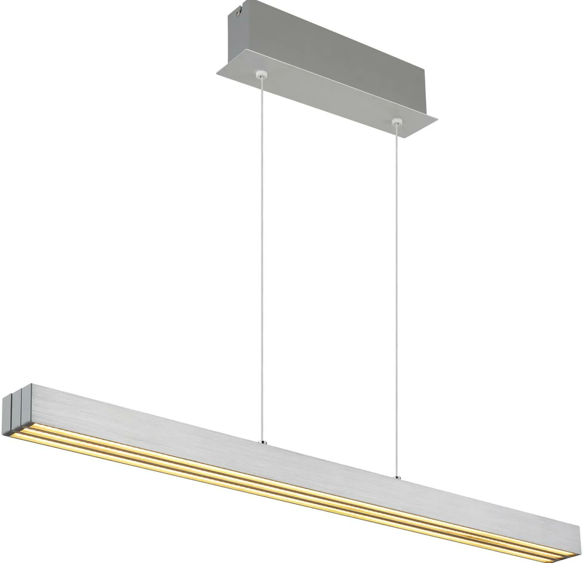 Lassen Sie mit dieser formschönen Hängelampe Ihre Inneneinrichtung erstrahlen. Die Lampe ist eine tolle Lichtquelle für viele Wohnräume und kann aufgrund des stilsicheren Designs auch als Dekoration genutzt werden. In dieser Leuchte kommen sämtliche Qualitäten und Besonderheiten der Marke GLOBO Lighting zusammen. Die Lampe besitzt eine Dimmfunktion für eine individuelle Regulierung der Helligkeit nach Ihren Wünschen. Die Leuchte aus Aluminium wurde für die Aufnahme von Leuchtmitteln mit FEST-Sockel hergestellt. Sie ist 150 cm hoch, hat eine Gesamtbreite von 7,5 cm und weist ein Längenmaß von 150 cm auf. Egal, wo sie installiert wird, wird die Innenlampe Ihrem Wohnraum einen persönlicheren Touch hinzufügen. Sie eignet sich ideal, um das Design jeglicher Einrichtung gelungen abzurunden. Die Hängeleuchte kann auch ausgeschaltet einen dekorativen Zweck erfüllen.
