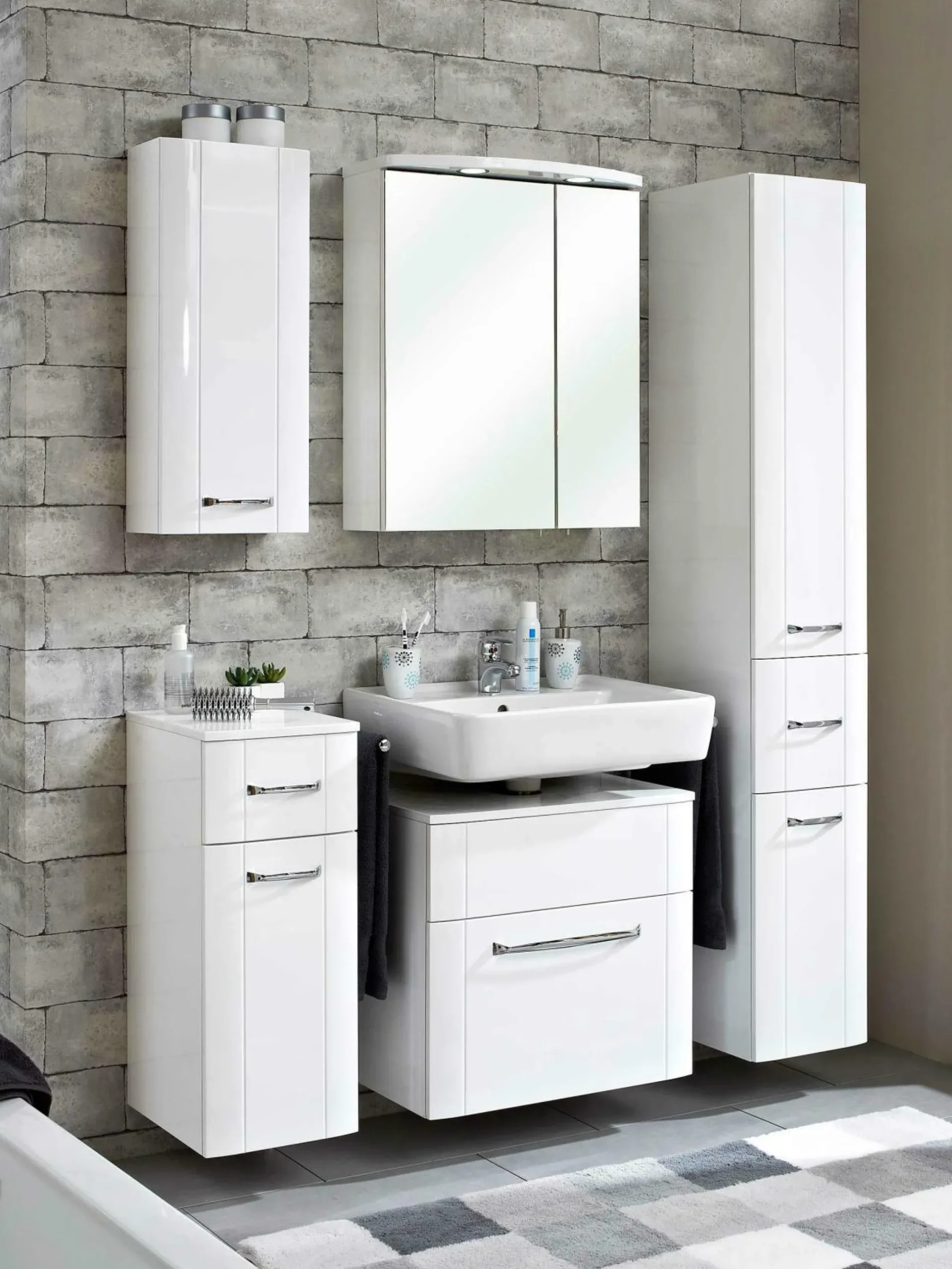 Ein praktisches Einrichtungselement für Ihr Badezimmer ist dieser Hängeschrank Fokus 3005 aus dem Hause pelipal. Der Schrank erscheint in einem modernen Design und überzeugt mit seiner weißen Hochglanz Optik. Ein schöner Hingucker ist zudem der Bügelgriff aus Chrom, welcher dem Schrank sein besonderes Aussehen verleiht. Dank seiner Tür mit zwei Glaseinlegeböden können zudem diverse Badutensilien hier ihren Platz finden.