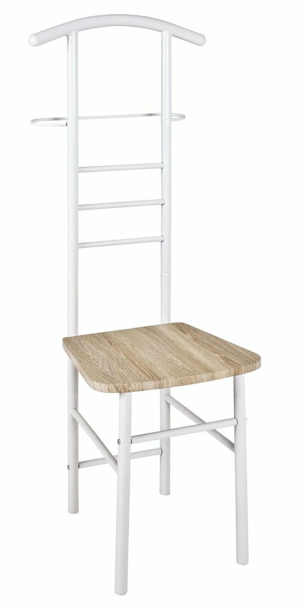 aus Stahl in hochglanz weiß lackiert, Sitz aus MDF Dekor eiche, Sitzhöhe 45 Sitztiefe 37