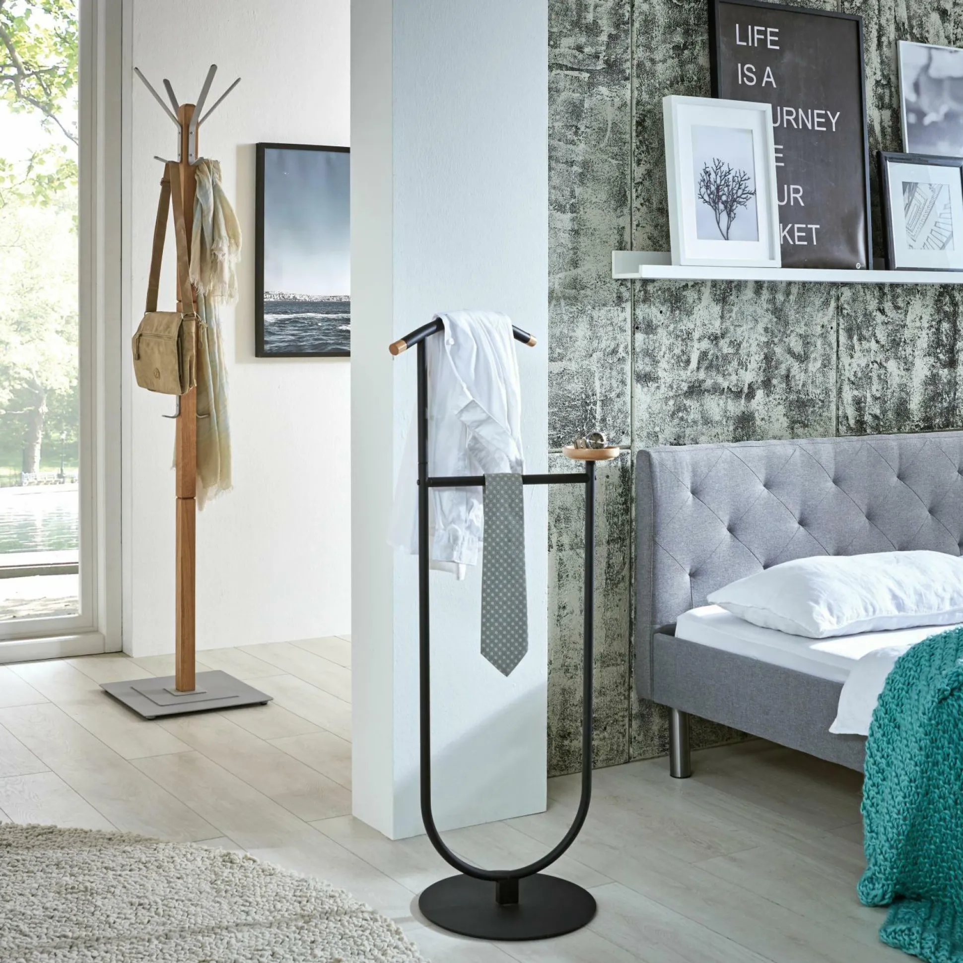 · aus Stahlrohr in schwarz pulverbeschichtet und Massivholz buche