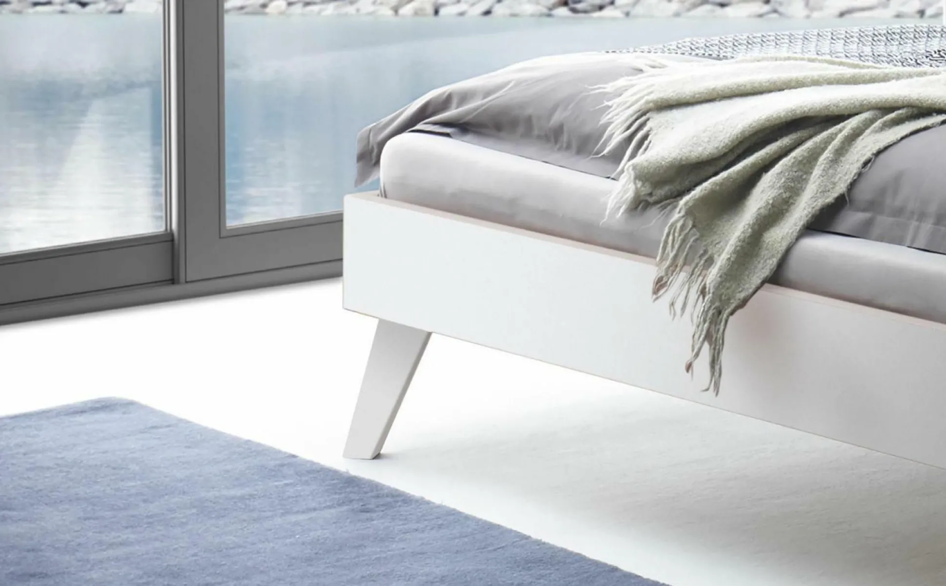 · Das Bett Ancona zeigt seine in der Hervorhebung von glatten Holzoberflächen. Schnörkellos tragen die schlanken Füsse den Bettrahmen. Das Kopfteil bildet dabei einen harmonischen Übergang zum Bettrahmen.
