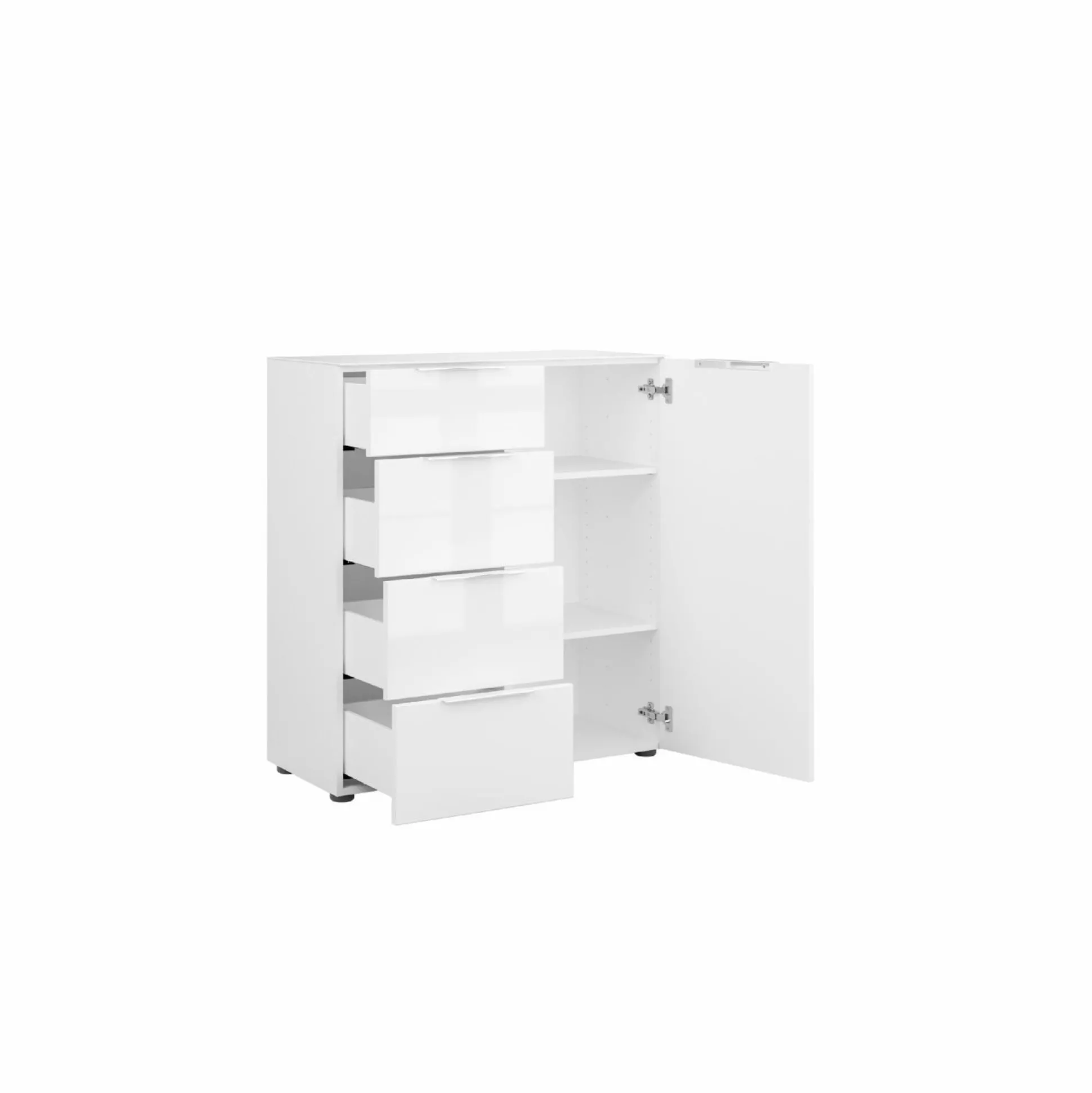 · vier Schubladen mit gedämpften Selbsteinzug und einer Tür
