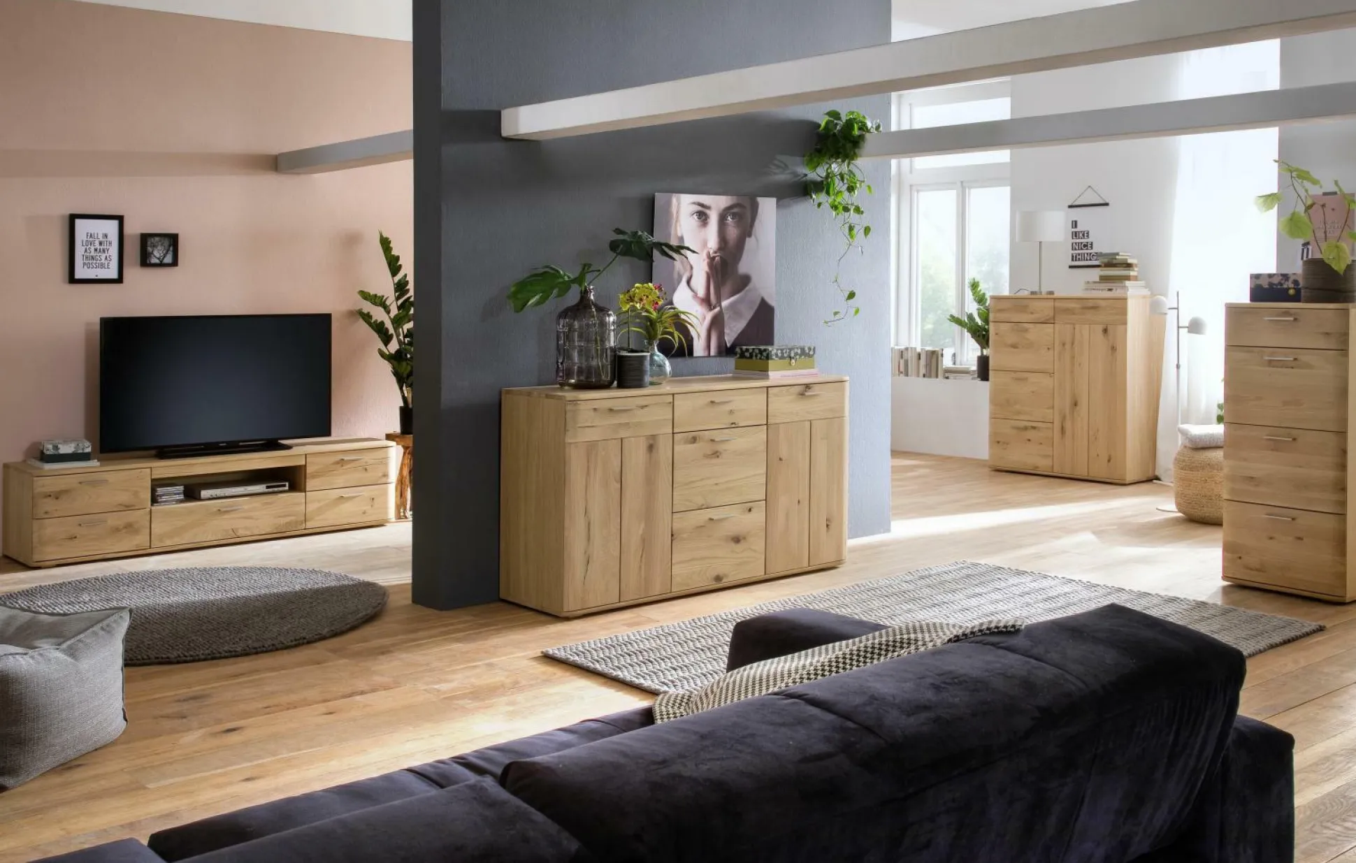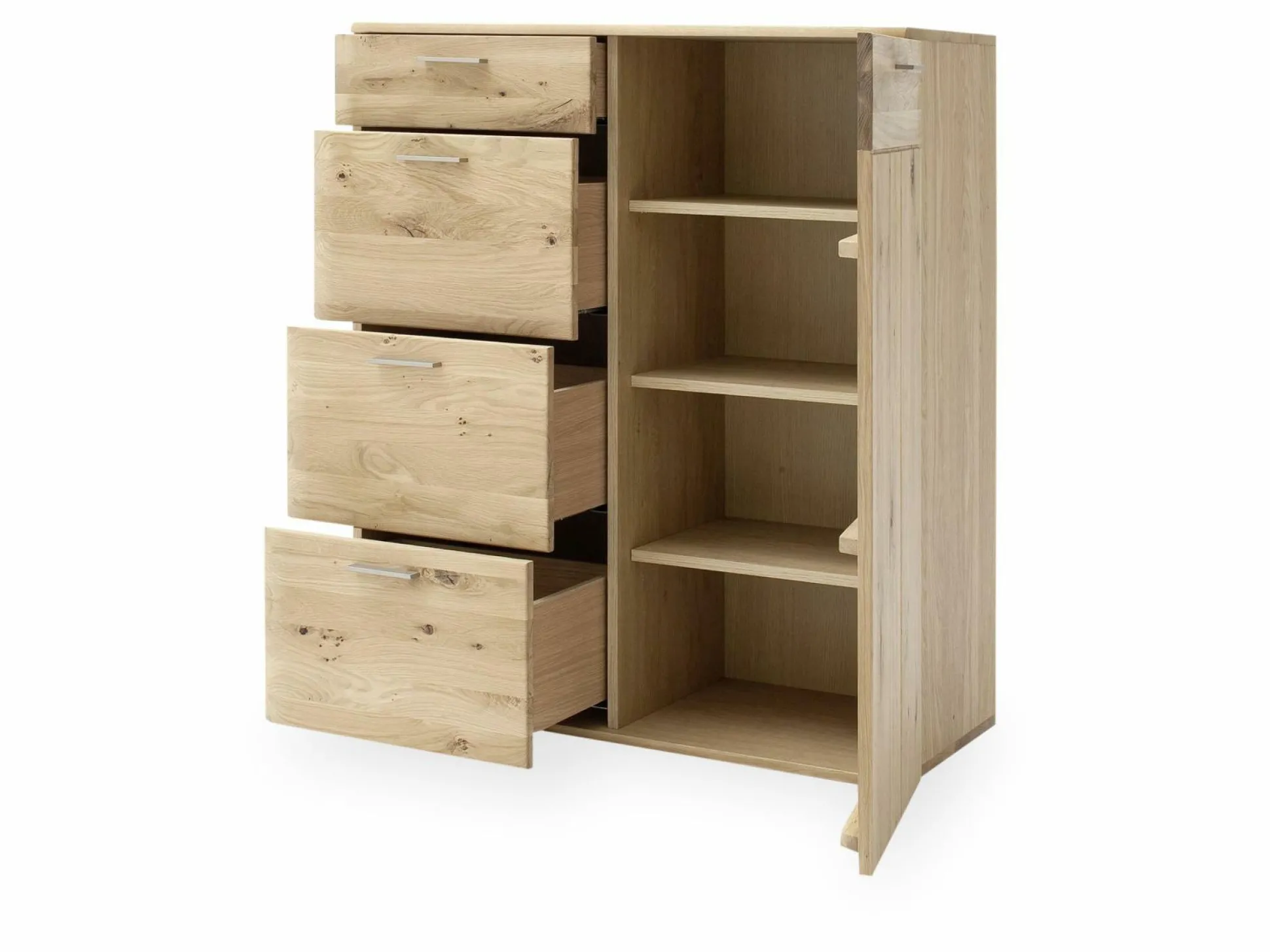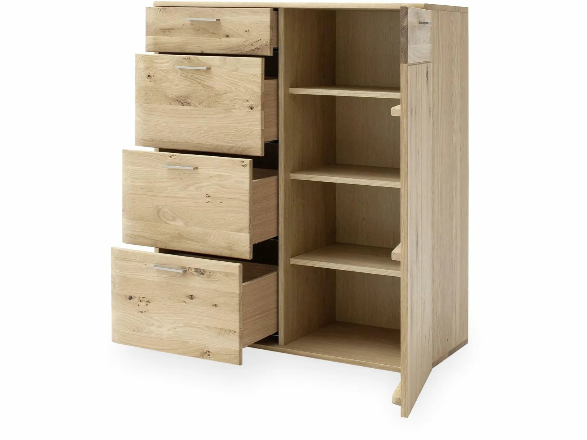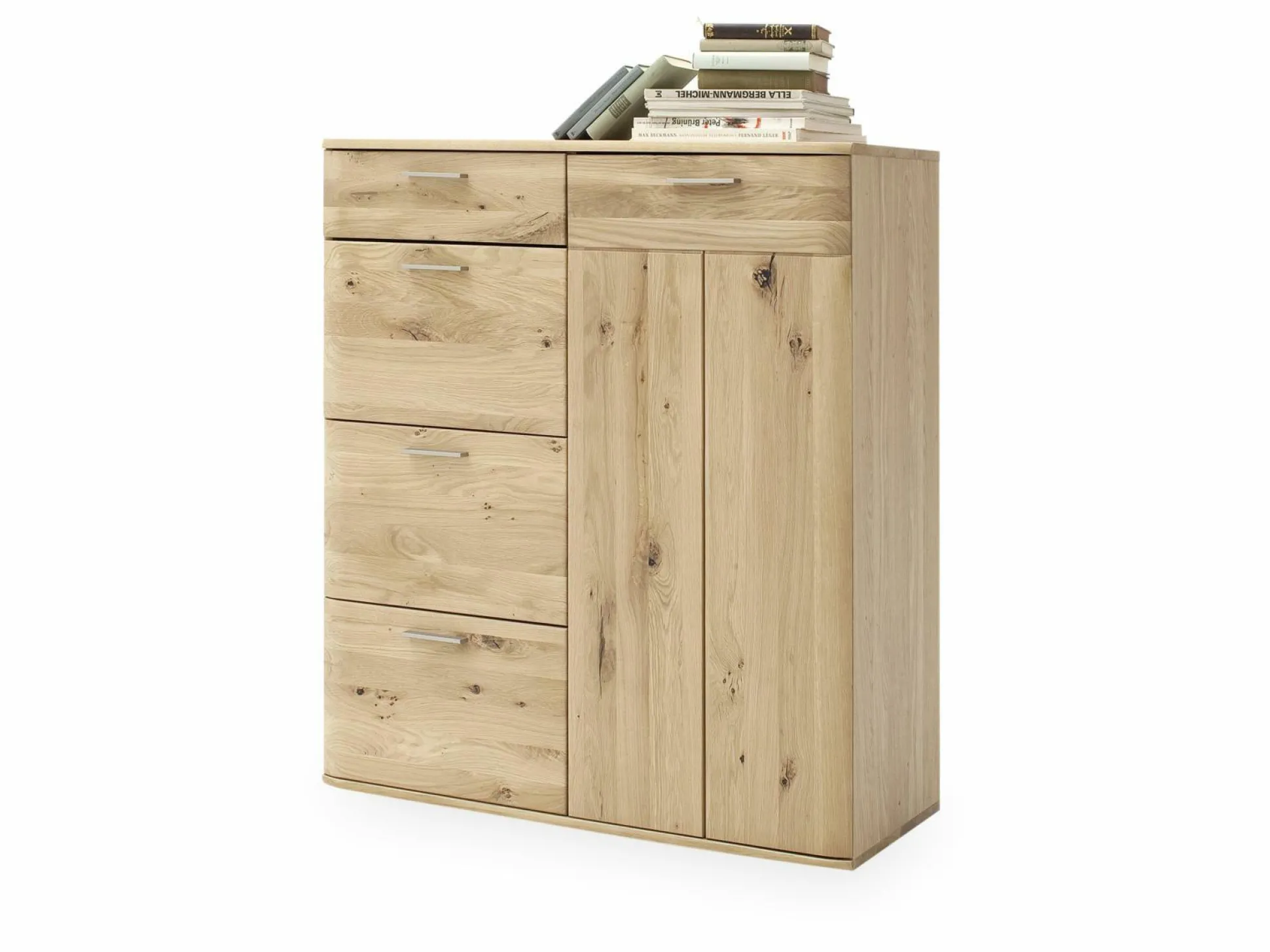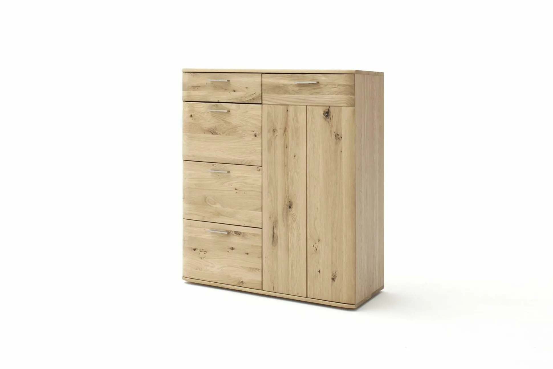 Die Kommode Nilo von der Marke MCA sorgt mit seinem natürlichen Design für eine heimische und wohlige Atmosphäre in Ihren Vier Wänden. Der Korpus wird aus furnierter Eiche (Nachbildung) gefertigt, wohingegen die Front aus hochwertiger Balkeneiche (bianco-Ausführung) besteht, und somit ihre volle Natürlichkeit behält.