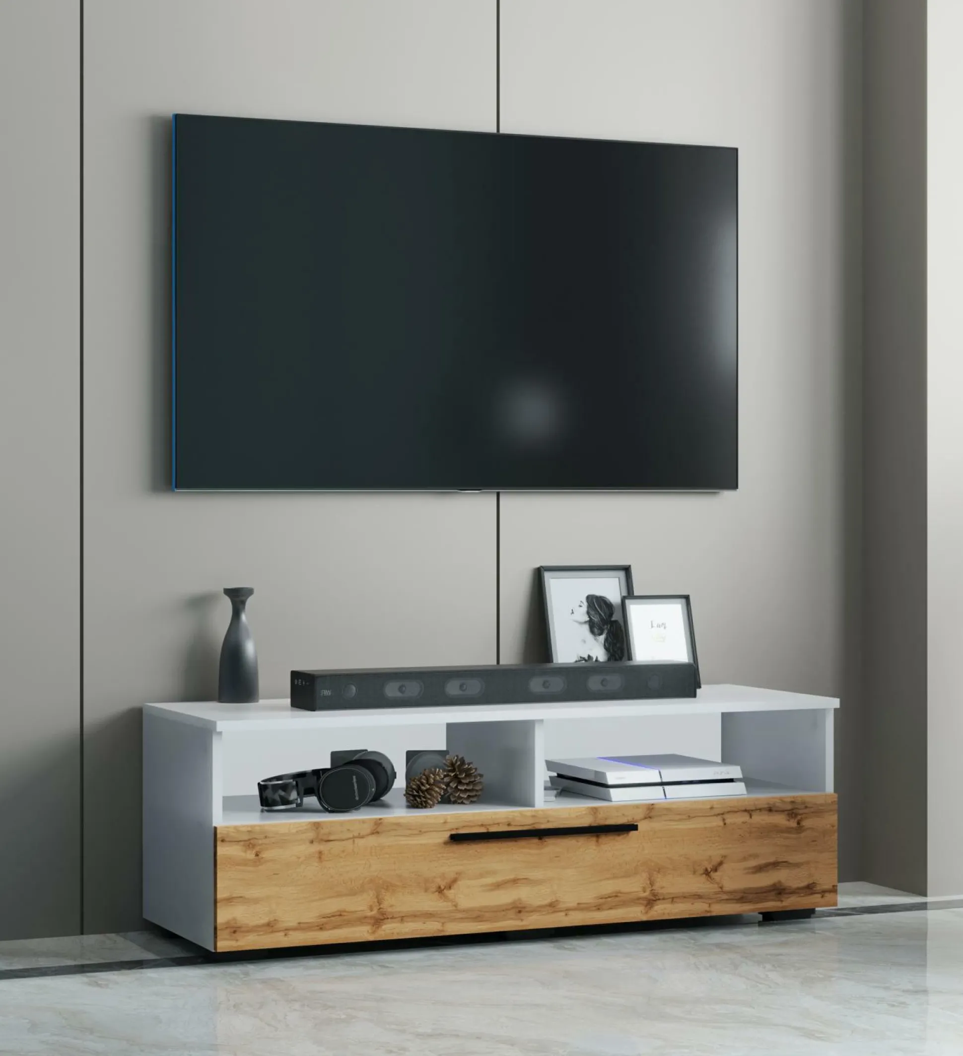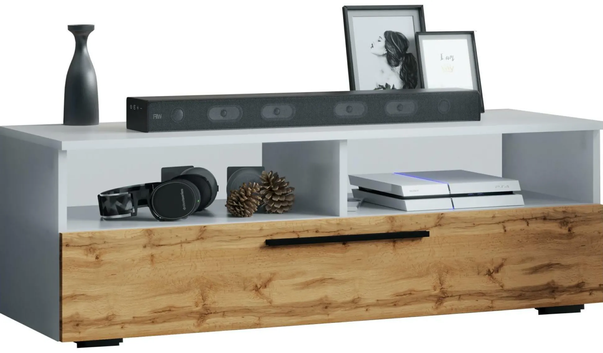 · Zwei offene Fächer z.B. für Audio-Geräte