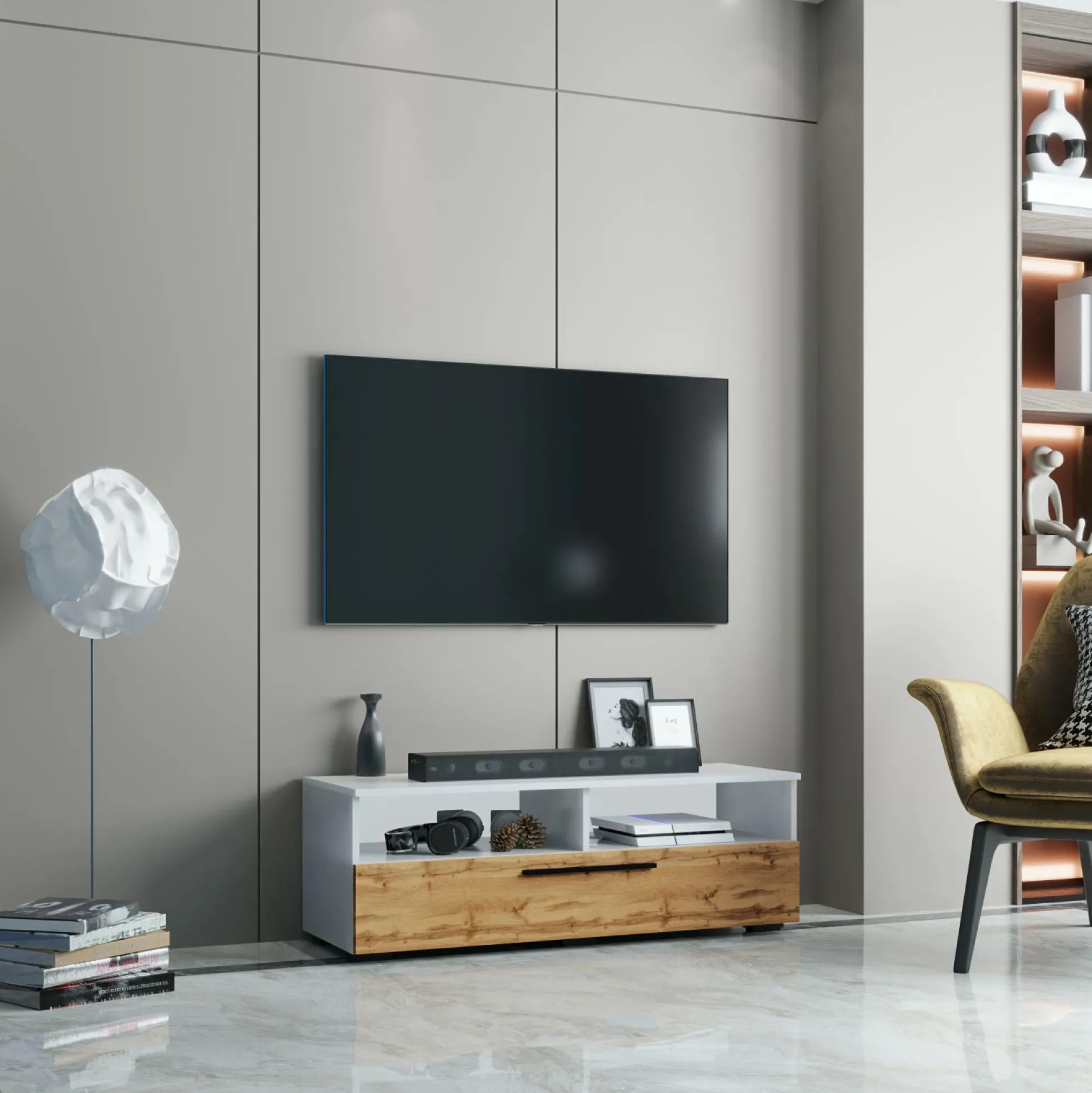 Das Lowboard ARILA verleiht Ihrer Wohnung ein behagliches Flair. In dieser Kommode kommen alle Qualitäten und Highlights, die die Marke VCM mit sich bringt, zusammen. Das Kastenmöbel aus Dekor kann auch optisch durch seinen modernen Stil punkten. Es hat ein Breitenmaß von 115 cm, eine Gesamthöhe von 39 cm sowie eine Tiefe von 40 cm. Die Kommode ARILA lässt sich in unzählige verschiedene Einrichtungsstile und Raumkonzepte integrieren.