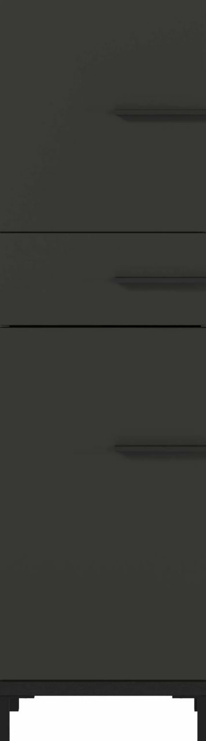 · Schrank mit einer Schublade (belastbar bis zu 10 kg) und zwei Türen – dahinter je ein verstellbarer Einlegeboden (belastbar bis zu 10 kg), Unterboden in Schwarz (belastbar bis zu 15 kg), Oberboden in Navarra-Eiche-Nb. (belastbar bis zu 10 kg), Rest in Graphit, drei Steggriffe und vier hohe Füße aus Metall in Schwarz, Melaminharzbeschichtung, hochwertige ABS-Kanten, Türen rechts/links anschlagbar, Türdämpfung, Selbsteinzug der Schublade, Made in Germany.