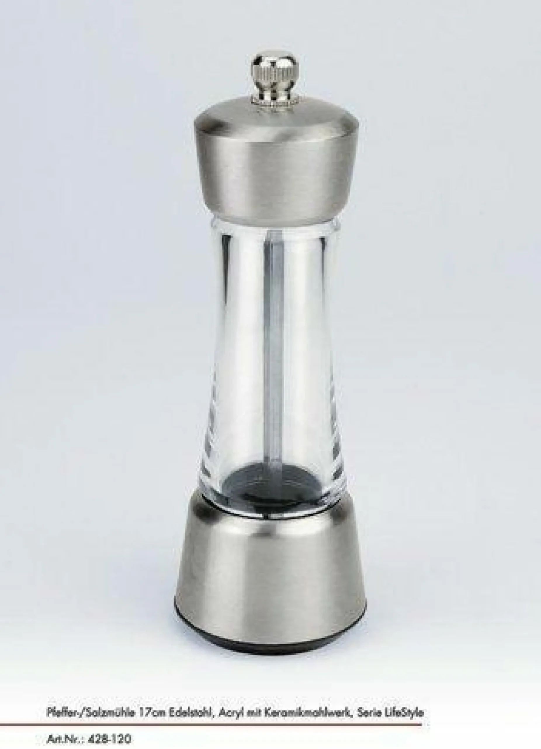 · Eine klassische Pfeffer-/Salzmühle mit Acrylbehälter, Edelstahlapplikationen und mit stabilem Keramikmahlwerk. So schön kann ein eleganter Klassiker sein.