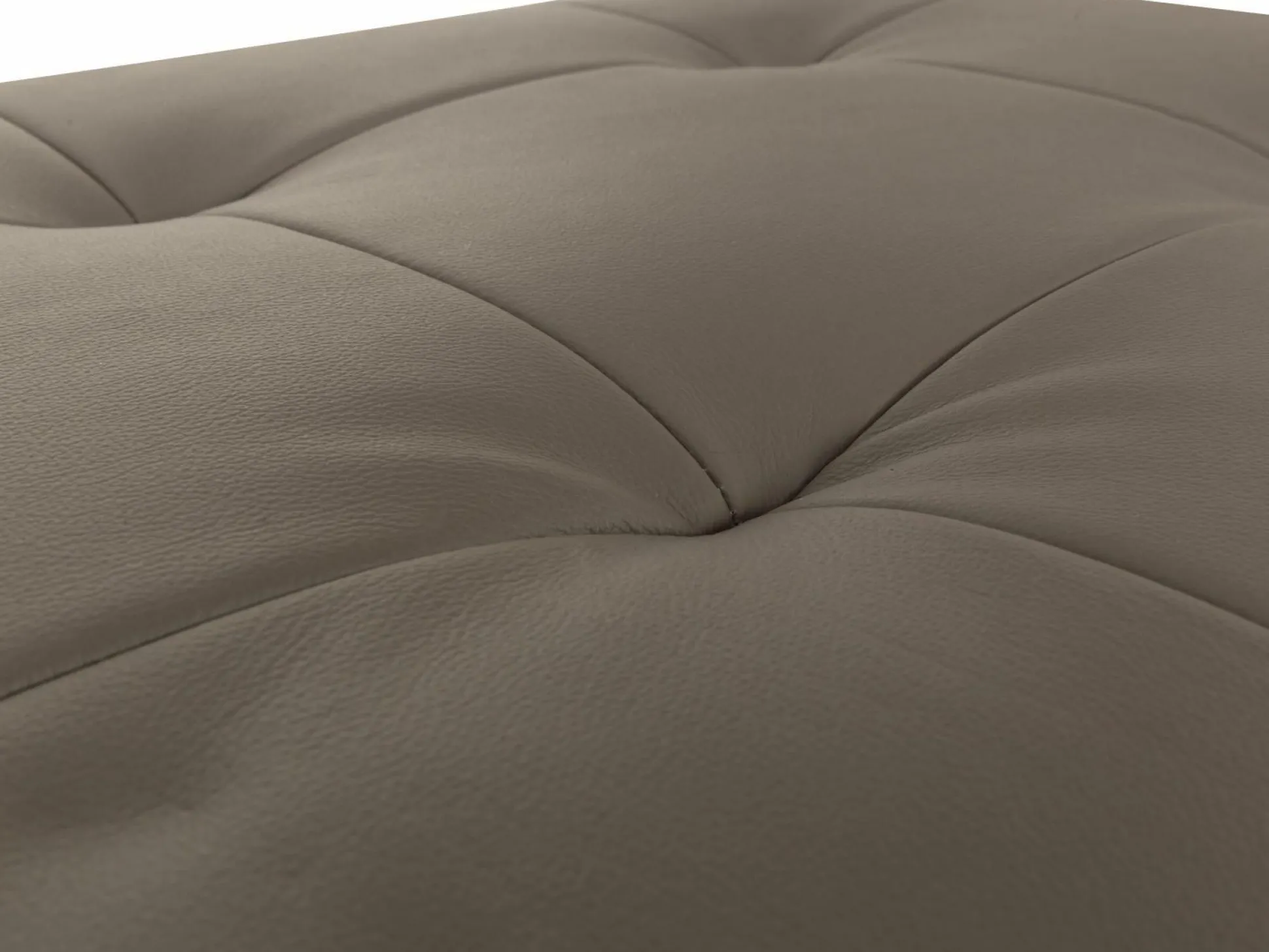 Für gemütliche Abende sorgt die Polsterecke Salvi. Ihr schickes Design lädt einfach zum Entspannen und Wohlfühlen ein. Die Couch ist mit Echtleder (Punch delphine) bezogen und ist damit super leicht zu reinigen. Die Sitzfläche ist mit Steppung versehen. Die chromfarbigen Metallfüße runden den Gesamtlook perfekt ab. Das Sofa besteht aus einem 2-Sitzer links und einem Longchair rechts. Die Polsterecke ist mit drei Schwenkrücken ausgestattet. Für einen hohen Sitzkomfort sorgt die Polsterung aus PUR Schaum auf Wellenfedern. Auf Wunsch sind Funktionen, eine Polsterung oder eine Sitzhöhe von 46 cm möglich.