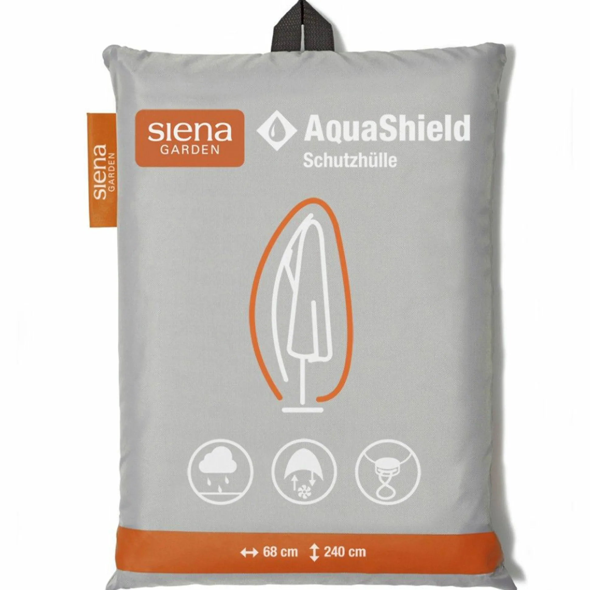 · Die AquaShield Ampelschirmhülle 68×240 cm sorgt für den idealen Schutz Ihres Ampelschirms. Dank des Active Air Systems wird die Bildung von Kondensation und Schimmel reduziert. Die Schutzhülle ist, für die leichte Nutzung, mit einem Stab und einem Reißverschluss ausgestattet. Zudem kann die Schutzhülle unten durch ein Zugband abgedichtet werden.