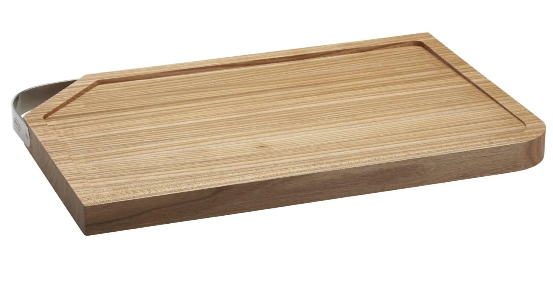 · Schneidbrett aus hochwertigem Ulmenholz mit Edelstahlgriff. Die nach hinten abfallende Arbeitsfläche sammelt austretende Flüssgikeiten,oder Schnittreste. Das einfache Verschieben von geschnittenen Lebensmitteln ist über die stufenlose Vorderkante möglich.