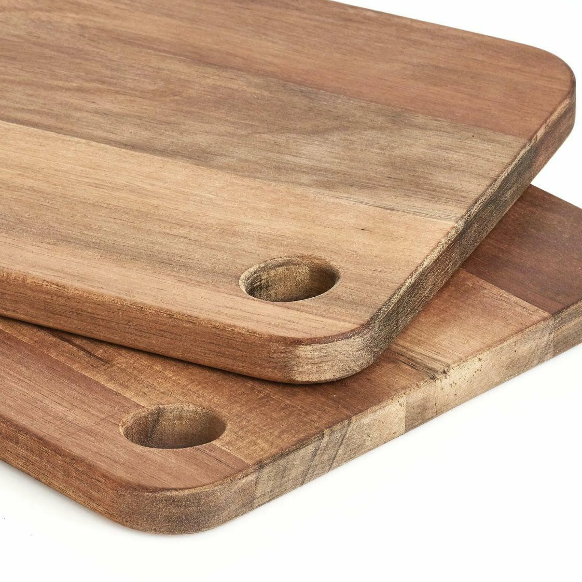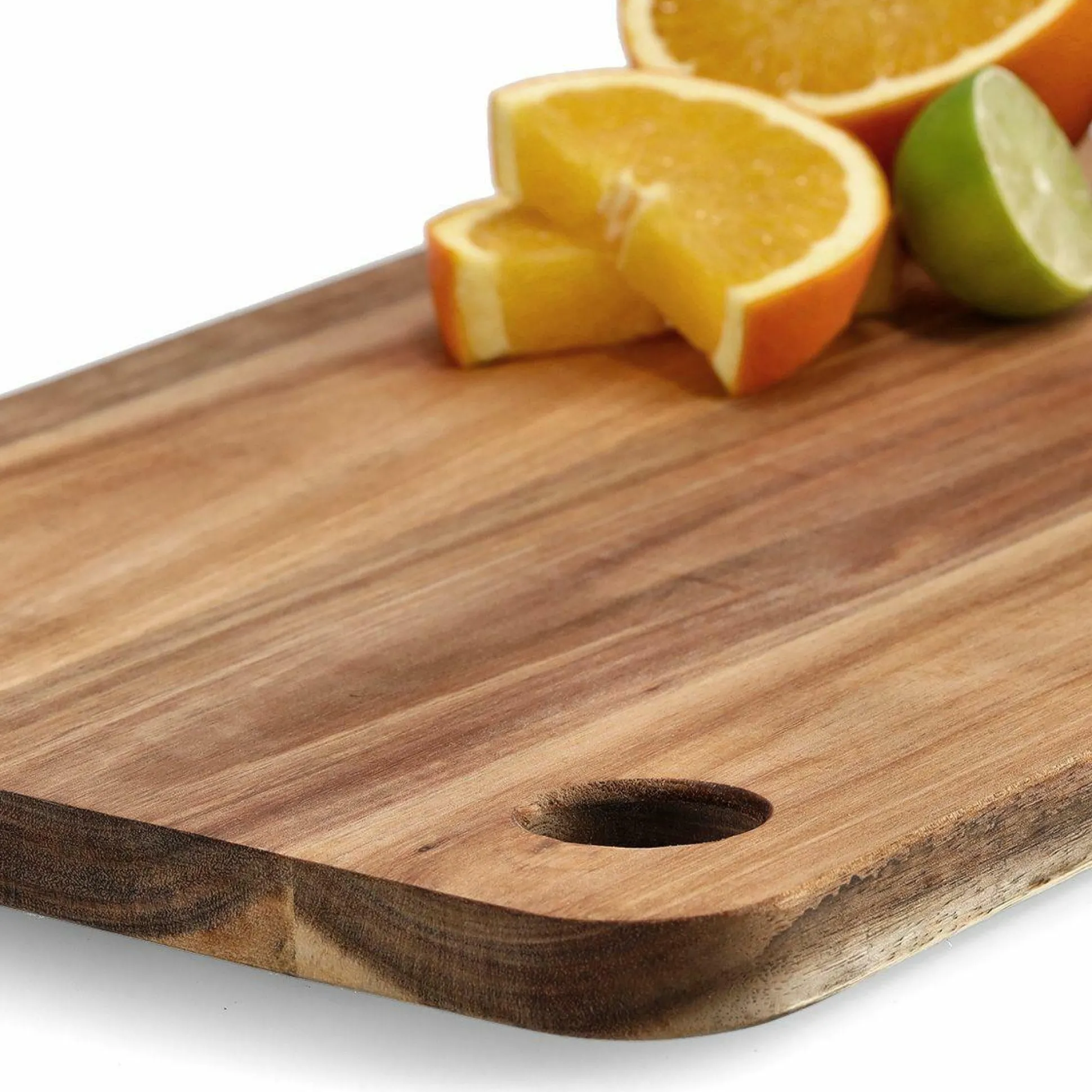 · Dieses robuste Echtholzbrett aus hochwertiger Akazie ist ein echtes Unikat. Durch die natürliche Maserung des Akazienholzes gleicht kein Schneidebrett dem anderen. Die Oberfläche des Bretts ist lediglich mit einem speziellen Öl behandelt, um unschönen Verfärbungen vorzubeugen und das empfindliche Holz zu versiegeln. Das integrierte Griffloch in der Größe von ca. 2,7 x 3,5 cm sorgt für einen schönen Tragekomfort. Entdecken Sie auch unsere weiteren Küchenhelfer und Schneidebretter aus Akazienholz.
