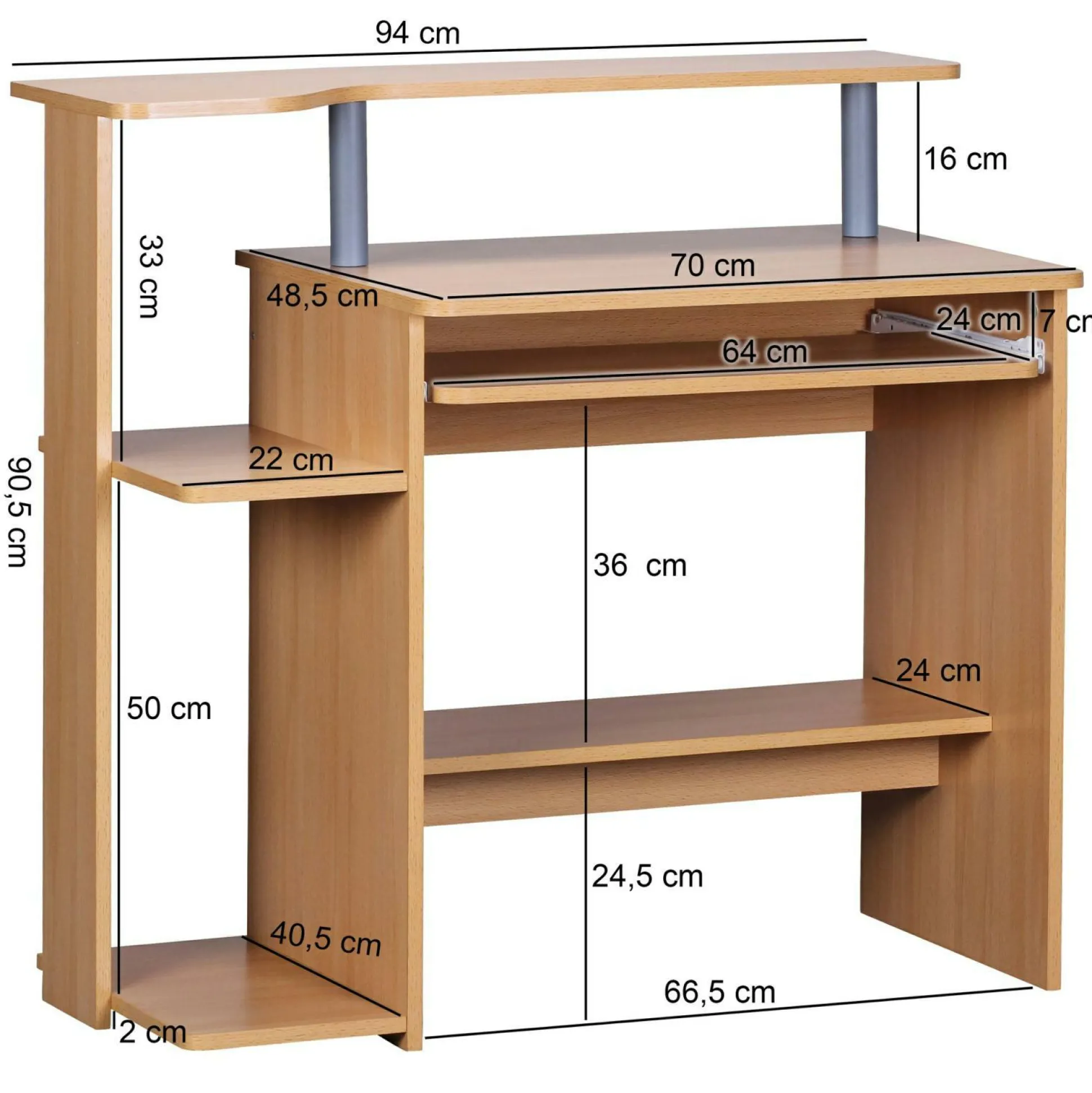 · Abmessungen – Arbeitsplatte (BxH): 70 x 48,5 cm