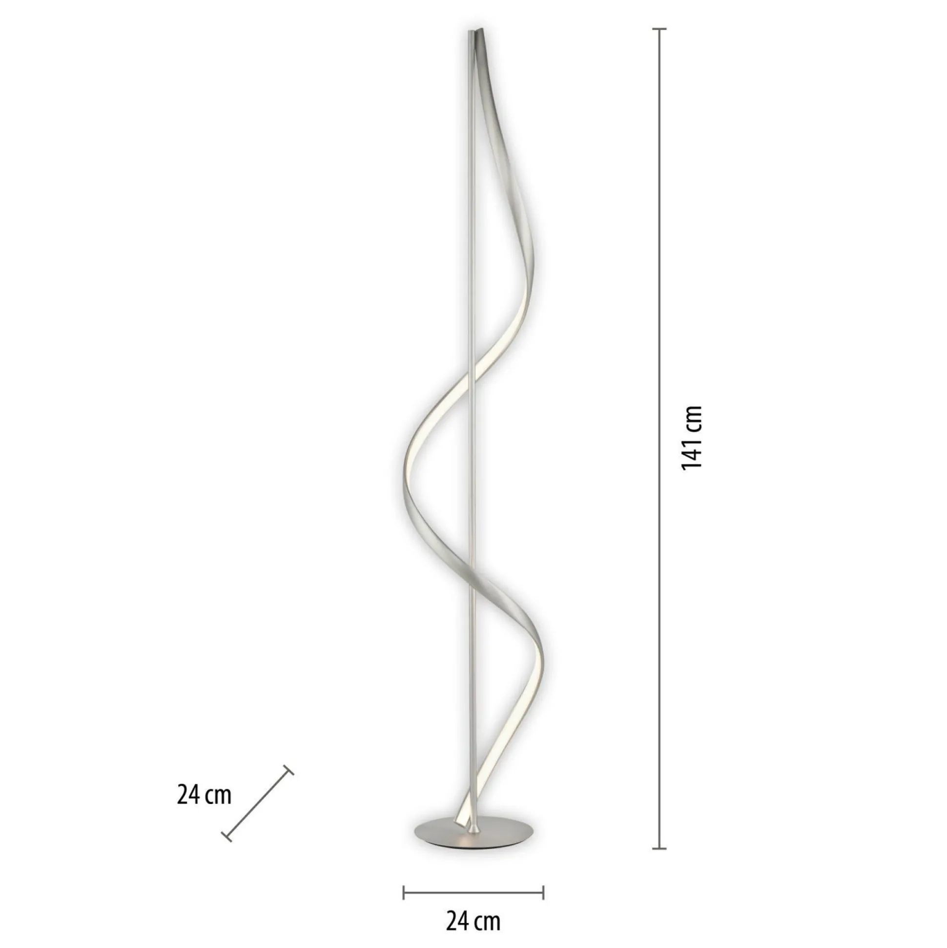 Diese Stehlampe eignet sich herausragend als zusätzliches Licht für Ihre Innenausstattung. Die Leuchte fügt sich mit ihrem hübschen Design ideal in jede Einrichtung ein und schafft eine angenehme Atmosphäre. In Paul-Neuhaus-Markenqualität begeistert sie mit gelungener Gestaltung und einem großartigen Wohnerlebnis. Die Lampe hat eine Länge von insgesamt 24 Zentimetern, eine Breite von 24 Zentimetern und eine Höhe von 141 Zentimetern. Sie macht in ihrem modernen Design eine ausgezeichnete Figur und punktet mit der Qualität des verwendeten Metalls. Die Stehlampe kreiert eine tolle Atmosphäre und kommt in Ihrem Wohnraum besonders schön zur Geltung. Für die Fassung werden Leuchtmittel mit einem FEST-Sockel benötigt. Die Lampe eignet sich ausgezeichnet, um das Erscheinungsbild eines Raumes stimmig abzurunden. Diese Leuchte kann auch Ihre bestehende Einrichtung aufwerten.