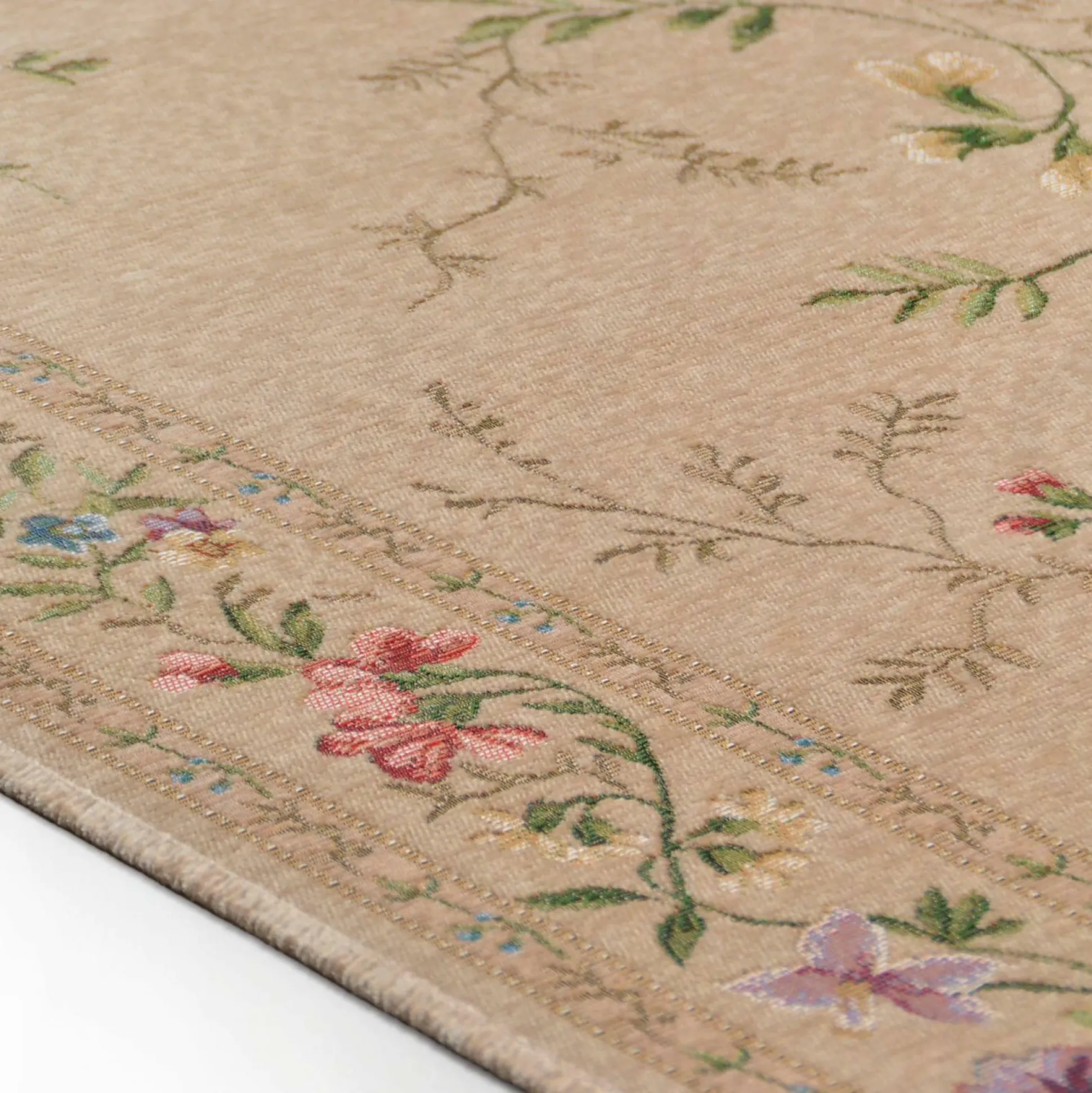 · Ein sehr schönes florales Design zeigen diese gewebten Teppiche , die in jedem Raum ein echtes Schmuckstück sind. Florhöe 3 mm bestehend aus 63% Polyester, 33% Polypropylen und 4% Baumwolle. Der Teppich ist trotz seiner geringen Gesamthöhe sehr robust und strapazierfähig, zudem ist der Flomi Fußbodenheizung geeignet.mit ca. 11 000 000 Webpunkten und einer nahezu unbegrenzten Zahl an Farben werden die Musterungen sehr detaliert darstellt.