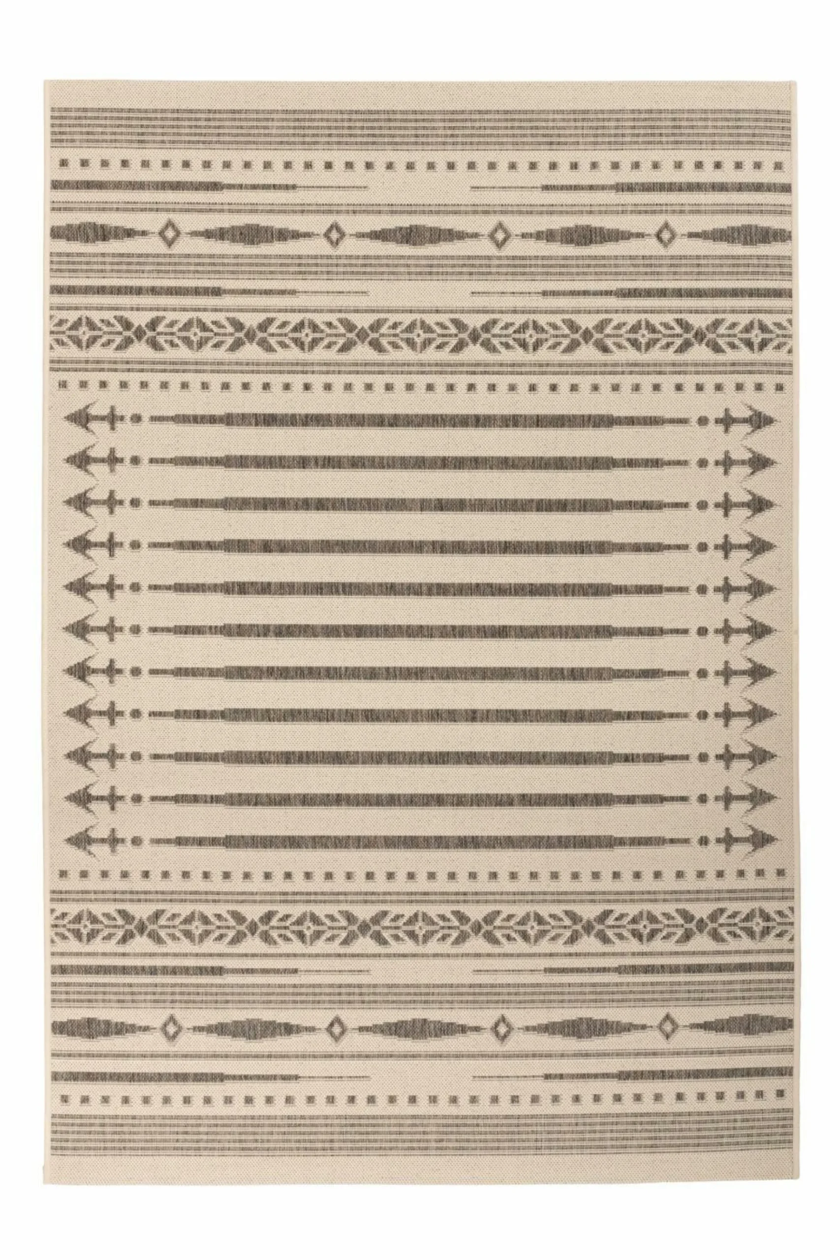 · Dieser robuste Teppich für den Außenbereich setzt mediterrane Akzente in jeden Wohnbereich. Der Flachgewebeteppich mit dezenter Farbgebung schafft durch das moderne Design ein gemütliches Ambiente in jedem Außenbereich. Dank seiner feuchtigkeitsbeständigen Kunstfaser aus Polypropylen ist er wasserabweisend und wetterfest. Außenbereiche können mit ihm als Läufer oder Auslegteppich das ganze Jahr über verschönert werden. Werten Sie die Möbel auf Ihrem Balkon auf, indem Sie den Teppich darunter platzieren oder gestalten Sie ausgewählte Bereiche Ihrer Terrasse wohnlich. Kombiniert mit modernen Loungemöbeln oder Sitzelementen und Beistelltischen schafft der Teppich ein gemütliches Ambiente, welches durch Kerzen und Lichterketten ergänzt werden kann. Ob auf Balkon, Terrasse oder Hof, der Outdoor Teppich ist überall gern gesehen und kann selbstverständlich ebenso im Wohnraum ausgelegt werden. Lassen Sie die Sommerabende mit diesem Teppich in Ihrem Außenbereich ausklingen!