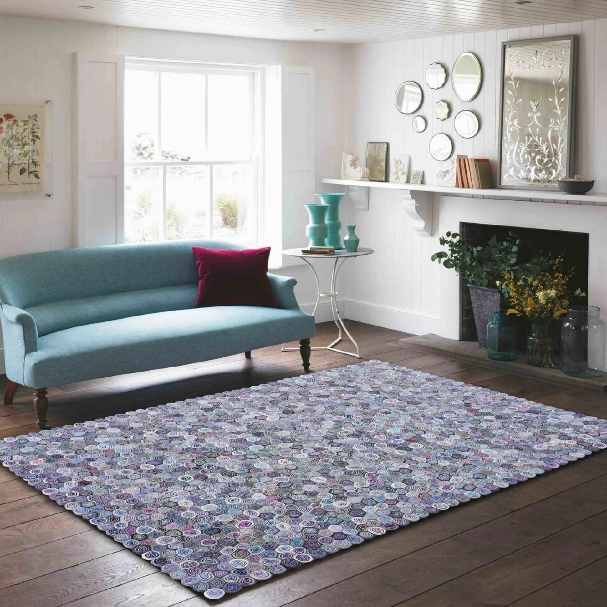 Mit dem Teppich Suchi setzen Sie außergewöhnliche Akzente in Ihrem Wohnbereich. Dieser schicke Teppich ist angenehm weich und besteht aus Filz. Einzelne Rollen mit farbenfrohem Design sind dabei aneinandergelegt und machen diesen Teppich zu einem besonderen Wohnaccessoire. Der Teppich sorgt dabei für ein Wohlfühlambiente im entsprechenden Raum!