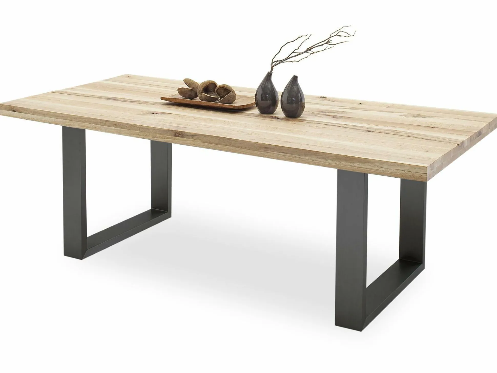 Der moderne Tisch CASTELLO der Trendmarke MCA vereint ein exklusives, rustikales Design mit hochwertigsten Materialien. Die 60 mm starke Tischplatte ist aus massiver Zerreiche gefertigt. Natürliche Gebrauchsspuren verleihen dem Holz einen besonderen Vintage Charakter. Die auffälligen Metallkufen sind aus 40 mm starkem und 120 mm breitem, anthrazitfarbigem Stahl gefertigt und harmonieren ansprechend mit dem schönen Holzton. Die Tischplatte hat an der langen Seite etwa 130 mm Überstand und an der Stirnseite 300 mm Überstand. Der Tisch wird in jedem Einrichtungskonzept zum Hingucker und bietet großzügigen Platz für gemeinsame Mahlzeiten mit Ihren Liebsten. Die Flächenbelastung liegt bei 90 kg.
