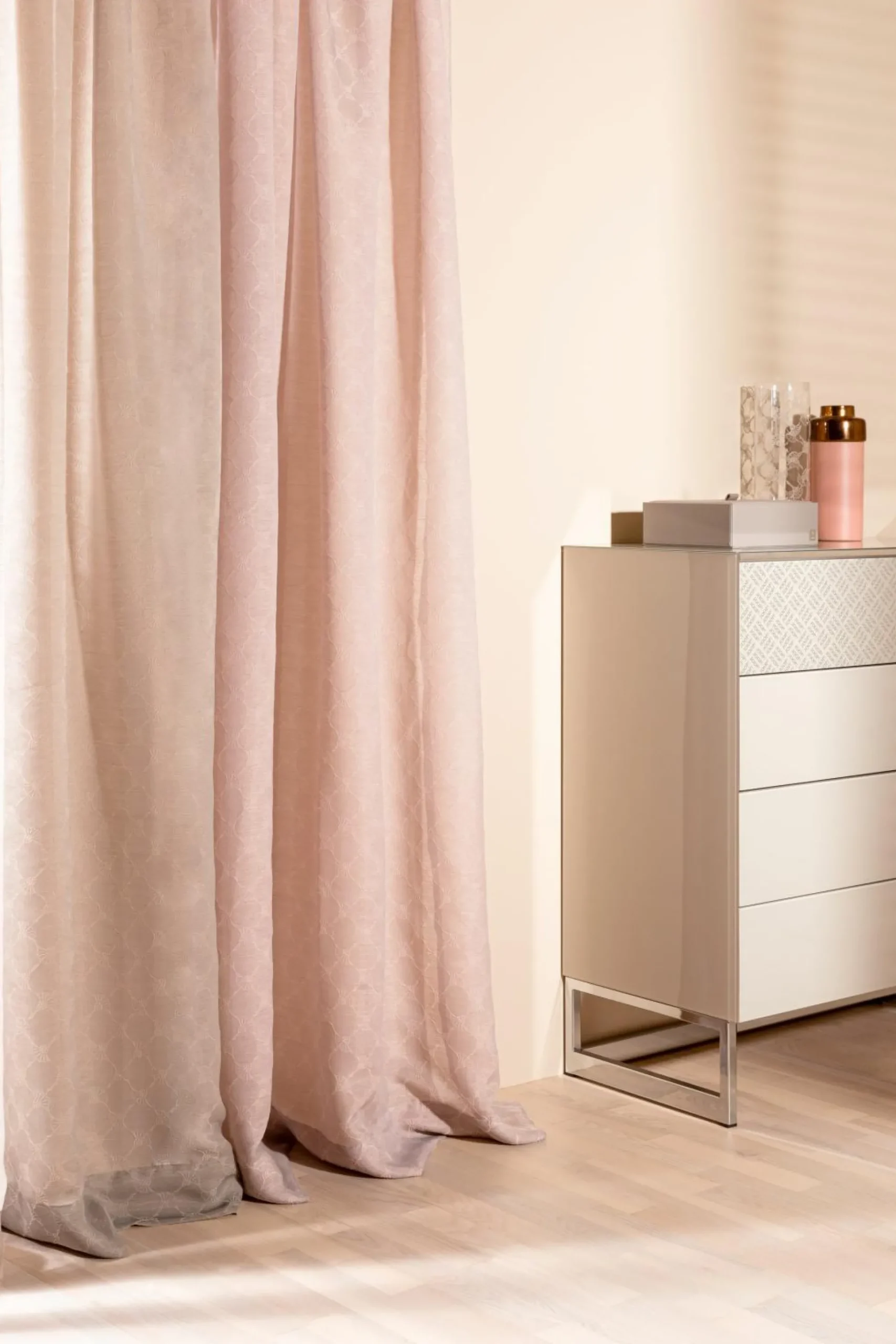 · Transparenter Vorhang mit verdeckten Schaufenband, gewebtes Kornblumenmuster in harmonischen Farben, leicht glänzend