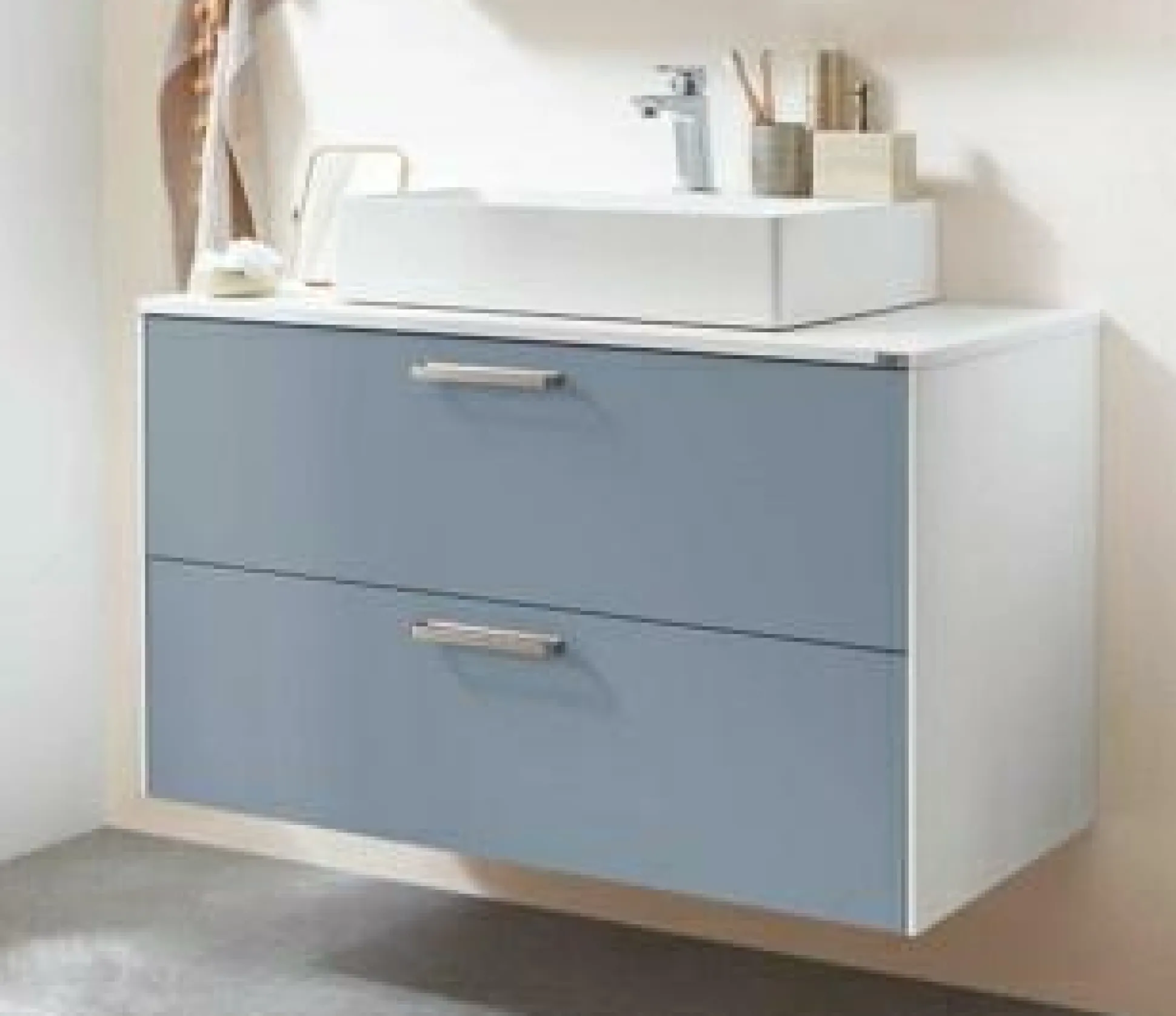 · Waschtischunterschrank mit zwei Auszügen und Holzrückwand für bauseitige Siphon-Aussparung, inkl. zwei Abschlusswangen, zwei Auszugsboxen und Ausschnitt