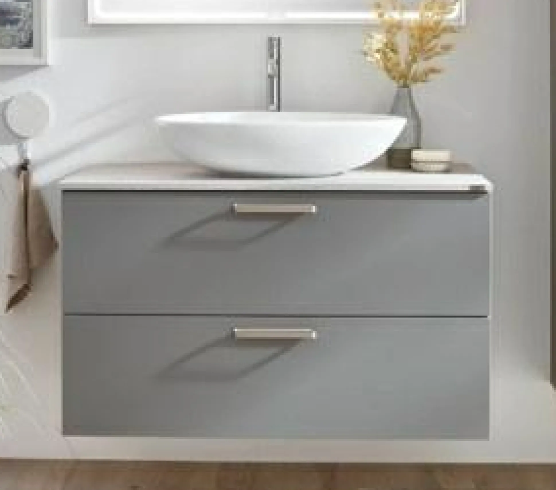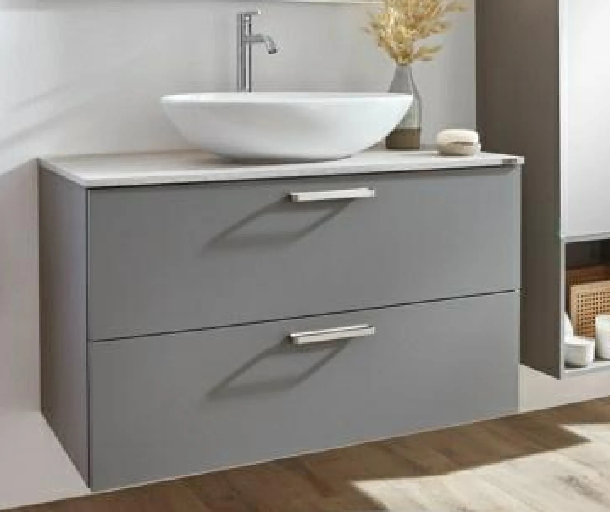 · Waschtischunterschrank mit zwei Auszügen mit Holzrückwand für bauseitige Siphon-Aussparung inkl. Abdeckboden und Ausschnitt