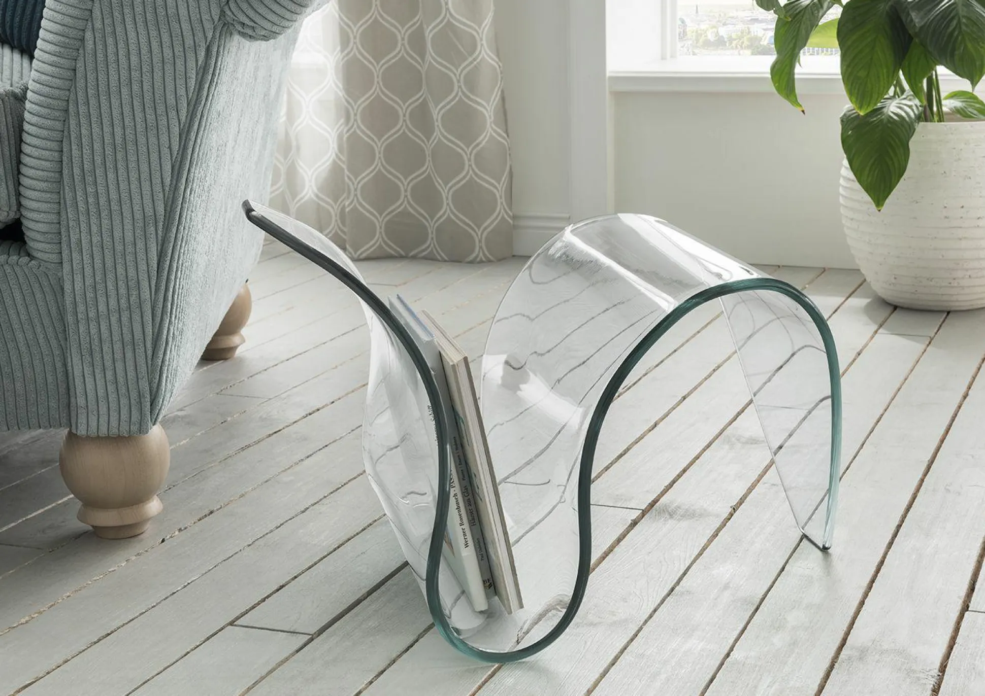 Der Zeitungsständer Cholet ist der ideale Begleiter für Ihr Zuhause. Das außergewöhnliche Design wertet auf schlichte Art und Weise Ihren Wohnbereich perfekt auf. Der Zeitungsständer ist aus formgebogenem Klarglas (12 mm) gefertigt.